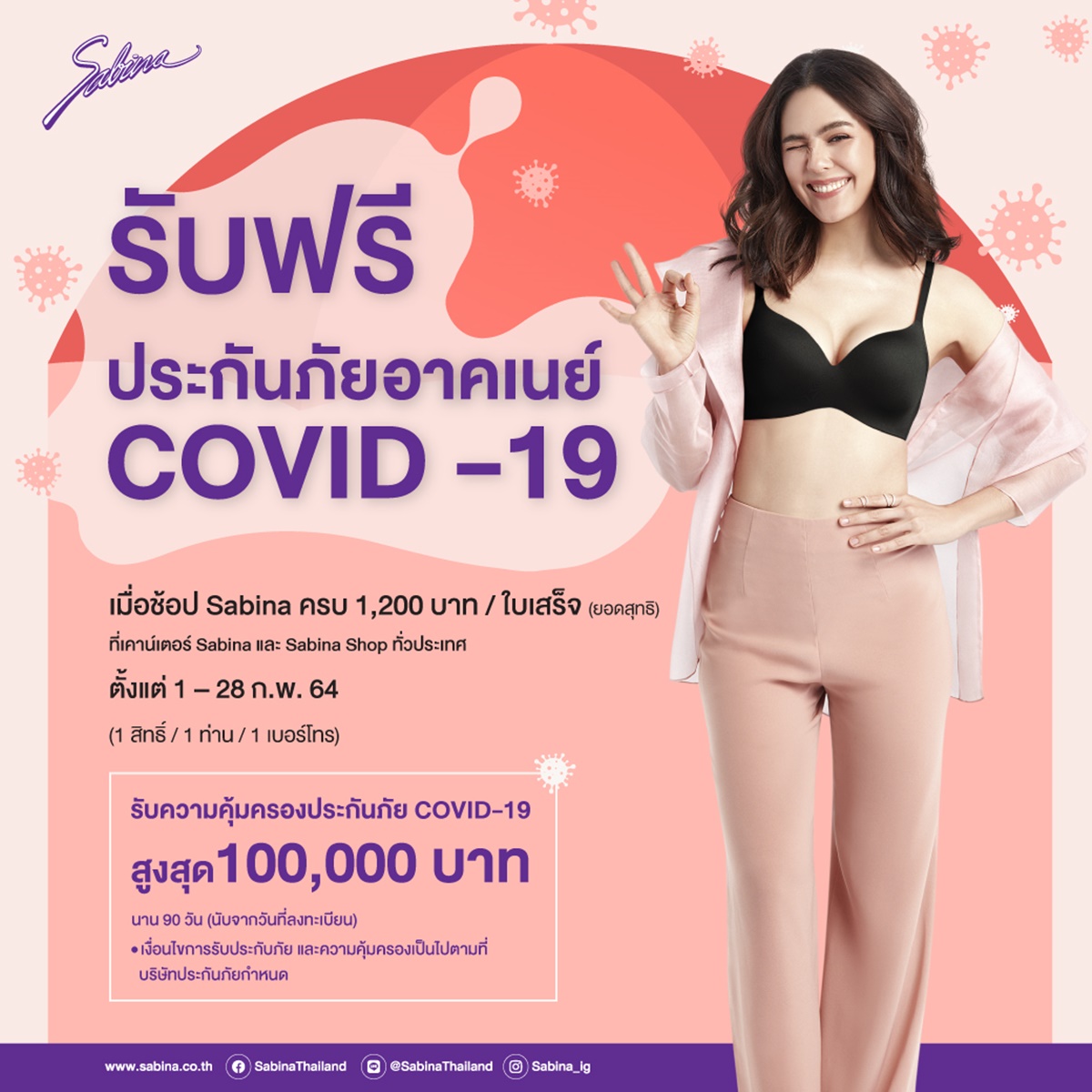 อาคเนย์ จับมือ ซาบีน่า ส่งแคมเปญเด็ด ช้อปครบ 1,200 รับ ประกันโควิด-19 ฟรี ประชาสัมพันธ์ FacebookFacebookXTwitterLINELine อาคเนย์ กลุ่มธุรกิจประกันและการเงิน จับมือกับแบรนด์ซาบีน่า (Sabina) จัดแคมเปญพิเศษเพื่อลูกค้าซาบีน่าโดยเฉพาะ เมื่อช้อปครบ 1,200 บาทต่อใบเสร็จ รับไปเลยประกันภัยโควิด-19 จากอาคเนย์ คุ้มครองสูงสุด 100,000 บาท นาน 90 วัน โดยจะได้รับ 1 สิทธิ์ / 1 ท่าน / 1 เบอร์โทร ที่เคาท์เตอร์ Sabina และ Sabina shop ทั่วประเทศ ตั้งแต่วันนี้ – 28 กุมภาพันธ์ 2564 FacebookFacebookXTwitterLINELine