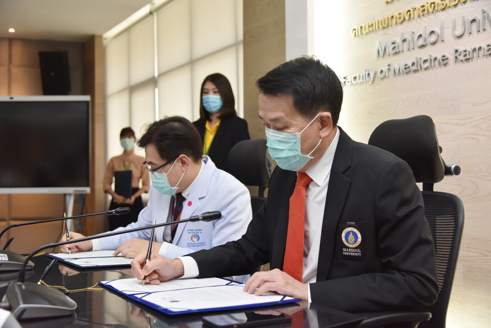 พิธีลงนามบันทึกข้อตกลงว่าด้วยความร่วมมือในการทำธนาคารชีวภาพสำหรับโรคมะเร็งแบบครบวงจร ระหว่าง คณะแพทยศาสตร์โรงพยาบาลรามาธิบดี มหาวิทยาลัยมหิดล และ สถาบันประสาทวิทยา กรมการแพทย์