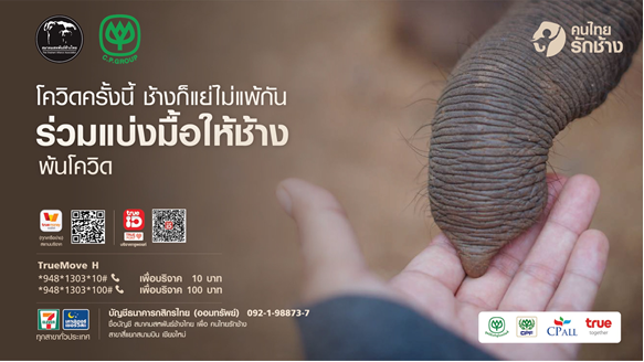 6 พฤษภาคม 2654 – บริษัท เครือเจริญโภคภัณฑ์ จำกัด ผนึกกำลังกับบริษัทในเครือ ประกอบด้วย บมจ.เจริญโภคภัณฑ์อาหาร หรือซีพีเอฟ บมจ.ซีพี ออลล์ และ บมจ.ทรูคอร์ปอเรชั่น ร่วมมือกับ “สมาคมสหพันธ์ช้างไทย” เปิดโครงการ “คนไทยรักช้าง” เพื่อช่วยเหลือและบรรเทาความเดือดร้อนด้านอาหารและสุขภาพของช้างเลี้ยงและควาญช้างในเครือข่ายของสมาคมสหพันธ์ช้างไทย ด้วยการรณรงค์ให้คนไทยจากทุกภาคส่วนร่วมกันแบ่งปันน้ำใจให้ก้าวผ่านวิกฤตโควิด-19 อย่างสมศักดิ์ศรีของการเป็นสัตว์คู่บ้านคู่เมืองของประเทศไทย นำร่องโดย ซีพีเอฟได้สนับสนุนอาหารช้าง จำนวน 60 ตัน หรือ 60,000 กิโลกรัม มอบให้แก่สมาคมสหพันธ์ช้างไทย เพื่อนำไปเป็นอาหารเสริมให้ช้างมีสุขภาพดี นอกจากนี้ กลุ่มทรู ยังสนับสนุนเทคโนโลยีอัจฉริยะทรู 5G ในระบบสื่อสารของรถพยาบาลช้าง พร้อมเปิดช่องทางรับบริจาคจากประชาชน ร่วมแบ่งปันน้ำใจให้ช้าง ผ่านระบบทรูมูฟ เอช แอปทรูยู แอปทรูไอดี และ แอปทรูมันนี่ วอลเล็ท รวมทั้งช่องทางของซีพี ออลล์ ได้แก่ เคาน์เตอร์เซอร์วิส ในร้านเซเว่นอีเลฟเว่นทุกสาขาทั่วประเทศ