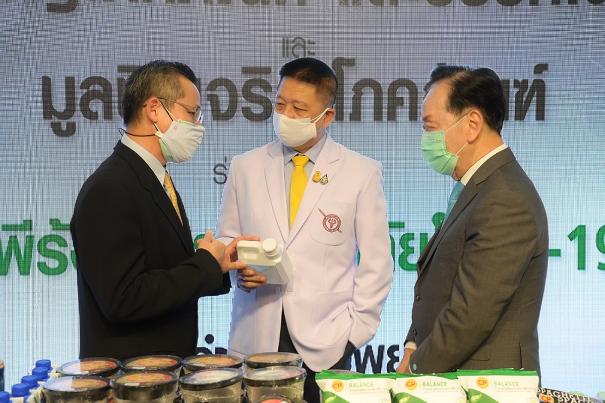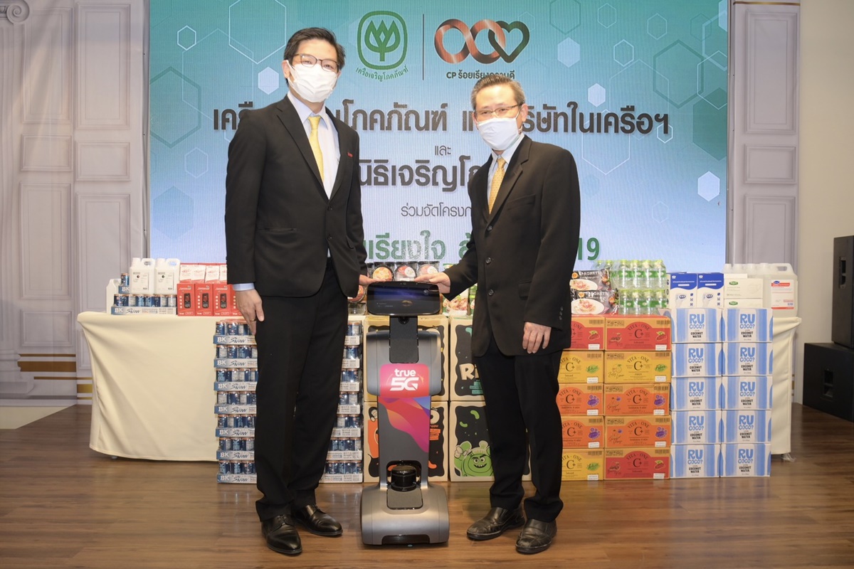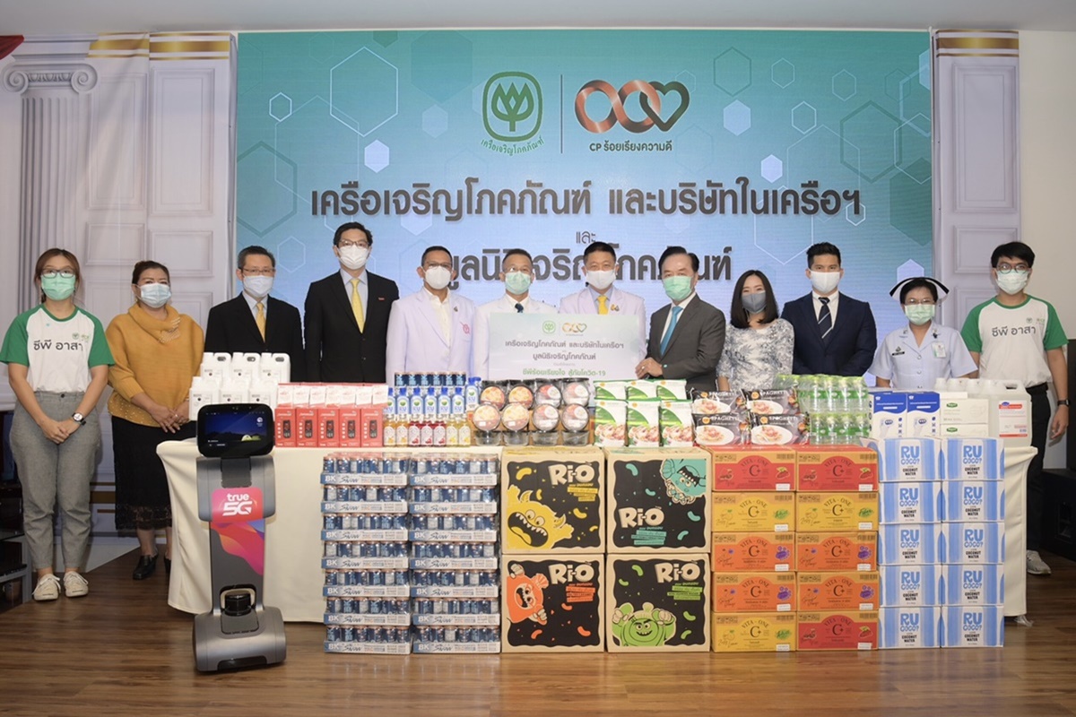ซีพีเอฟ นายพรเทพ เจียรวนนท์ ผู้ช่วยกรรมการผู้จัดการ บริษัท เจียไต๋ จำกัด นายมนัสส์ มานะวุฒิเวช กรรมการผู้จัดการใหญ่ (ร่วม) บมจ. ทรู คอร์ปอเรชั่น น.ส.รุจนาฏก์ วิมลสถิตย์ รองกรรมการผู้จัดการใหญ่บริหาร ด้านบรรษัทสัมพันธ์ เครือซีพีและ ว่าที่ร้อยตรี พรทิพา เรืองฉาง ผู้ชำนาญการอาวุโส บมจ ซีพี ออลล์ ร่วมเป็นผู้แทนเครือฯ ส่งมอบเครื่องอุปโภค บริโภค อาหารพร้อมรับประทาน และอำนวยความสะดวกระบบสื่อสารอินเทอร์เน็ต รวมทั้งน้ำยายับยั้งการเจริญเติบโตของเชื้อไวรัส (i-Sol Tech) จากเจียไต๋ ให้แก่โรงพยาบาลตำรวจและโรงพยาบาลสนามของรพ.ตำรวจ โดยมี พล.ต.ท.พรชัย สุธีรกุล นายแพทย์ (สบ 8) โรงพยาบาลตำรวจ และพล.ต.ต. วัชรินทร์ พิภพมงคล นายแพทย์ (สบ. 7) โรงพยาบาลตำรวจ เป็นผู้รับมอบ ณ ชั้น 2 อาคารมหาภูมิพลราชานุสรณ์ โรงพยาบาลตำรวจ