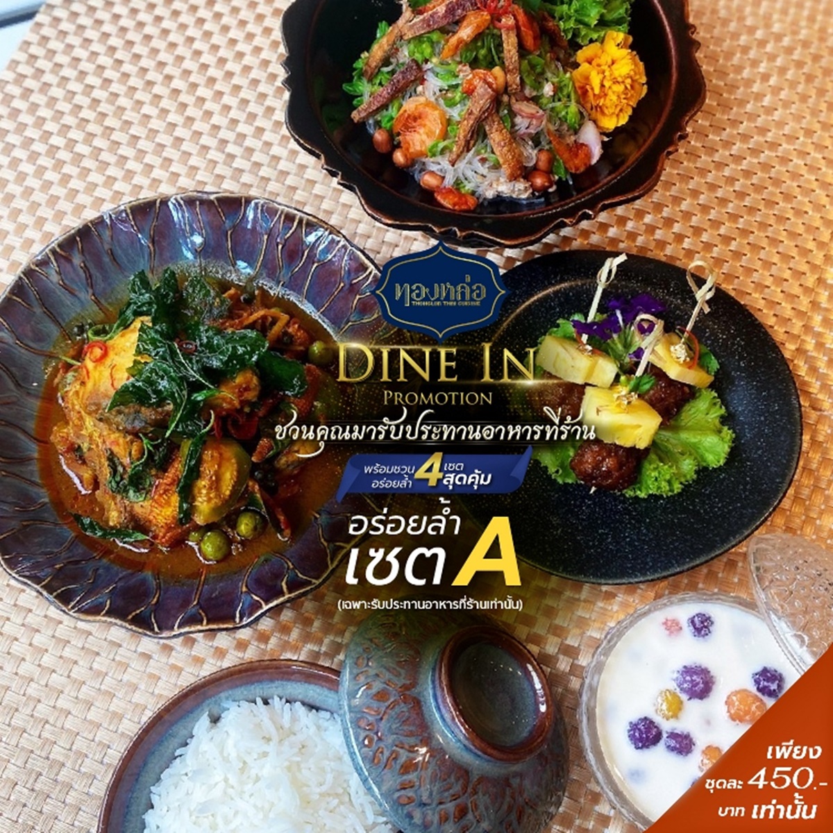 ร้านอาหารไทย “ทองหล่อ” ชวนคุณมารับประทานอาหารที่ร้านกับเมนูอร่อยสำหรับทุกมื้อ มั่นใจกับมาตรการป้องกันไวรัสโควิด-19 อย่างเคร่งครัด โดยจัดเต็มความอร่อยผ่าน 4 เซตเมนูอาหารสุดคุ้ม กับโปรโมชั่นไดอิน ที่ให้คุณอิ่มอร่อยทั้งเมนูอาหารไทยพื้นบ้านและเมนูเลิศรสที่ดีต่อสุขภาพ ที่ปรุงอย่างพิถีพิถันโดยฝีมือเชฟคุณภาพคนรุ่นใหม่ในทุกขั้นตอน ในราคาเพียงชุดละ 450 บาท (รับประทานได้ 1-2 ท่าน) ไม่ว่าจะอิ่มอร่อยมื้อกลางวันหรือมื้อเย็นก็อร่อยสุดคุ้ม พร้อมให้บริการตั้งแต่วันนี้ – 30 พฤศจิกายน ศกนี้ (4 เซตอาหารสุดคุ้มนี้ให้บริการเฉพาะรับประทานอาหารที่ร้านเท่านั้น)