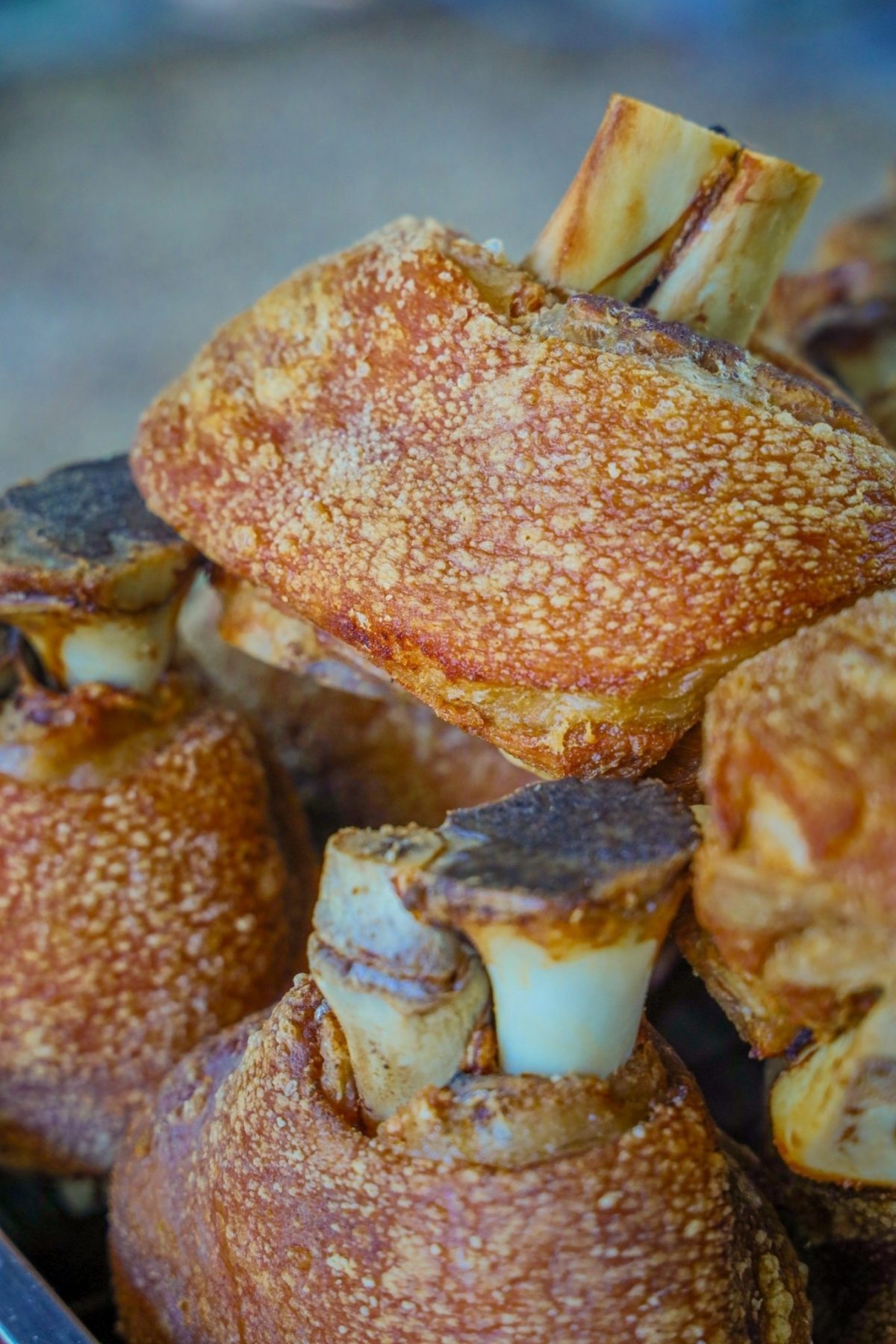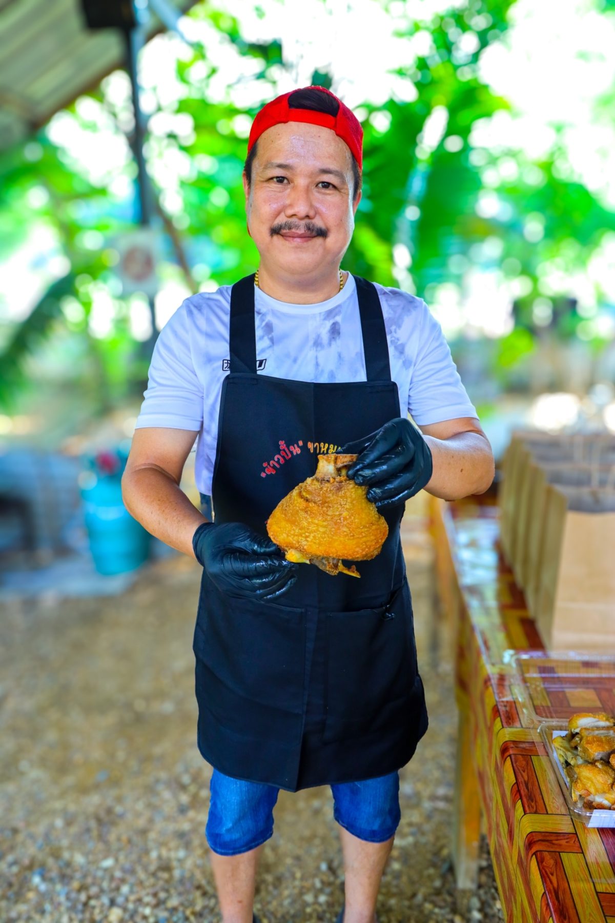 เริ่มตั้งแต่การเลือกวัตถุดิบ เราเน้นขาหมูขนาด 8-9 ร้อยกรัม ไม่เล็กไม่ใหญ่จนเกินไป เพื่อให้ลูกค้าได้กินหมด และอิ่มแบบพอดี ส่วนถ้าขายแบบฟรีซแข็งยังไม่ทอด ส่งให้ร้านอาหารจะใช้ขนาด 7-8 ร้อยกรัม ค่อยขยับใช้เป็นขาหมูขนาดใหญ่ขึ้นแทน