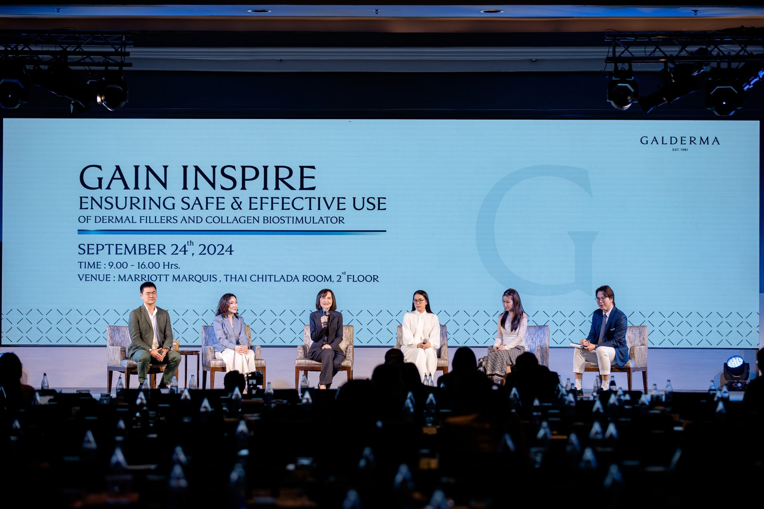 ในปีนี้กัลเดอร์มายกระดับองค์ความรู้ไปอีกขั้น เชิญคณะแพทย์แถวหน้าเมืองไทยด้านสารเติมเต็ม ความงามและการปรับรูปหน้า รวมถึงด้านดวงตา มาร่วมส่งต่อเทคนิค ความรู้ และประสบการณ์เกี่ยวกับการจัดการภาวะแทรกซ้อนที่อาจเกิดจากการทำหัตถการสารเติมเต็มและสารกระตุ้นคอลลาเจน ในฐานะผู้แพทย์ผู้เชี่ยวชาญและมีประสบการณ์ด้านความงาม นำโดย รศ.(พิเศษ) พญ.วิไล ธนสารอักษร ภาควิชาอายุรศาสตร์ คณะแพทยศาสตร์โรงพยาบาลรามาธิบดี, รศ. นพ.ถนอม บรรณประเสริฐ, พันตรี นพ.ธนาพงษ์ สมกิจรุ่งโรจน์ ประธานชมรมต้อกระจกและผ่าตัดแก้ไขสายตาผิดปกติฯ แพทย์เฉพาะทางด้านจอตาและม่านตาอักเสบ โรงพยาบาลจุฬาลงกรณ์, รศ. นพ.ชัย กอบกิจสุขสกุล อาจารย์ประจำสาขารังสีวิทยาร่วมรักษาระบบประสาท คณะแพทยศาสตร์ โรงพยาบาลรามาธิบดี, ศ. นพ.วาสนภ วชิรมน อาจารย์ประจำหน่วยโรคผิวหนัง ภาควิชาอายุรศาสตร์ คณะแพทยศาสตร์ โรงพยาบาลรามาธิบดี, รศ. พญ.ปุณยพัศฐิช์ ศิริธนบดีกุล อาจารย์ประจำหน่วยผิวหนัง วิทยาลัยแพทย์ศาสตร์นานาชาติจุฬาภรณ์ มหาวิทยาลัยธรรมศาสตร์, อ. นพ.ณัฐชาต จุไรรัตนาภรณ์ สาขาวิชาโรคผิวหนัง ภาควิชาอายุรศาสตร์ คณะแพทยศาสตร์ โรงพยาบาลรามาธิบดี, อ.พญ.สินิชญาน์ สหวัฒน์วงศ์ ภาควิชาอายุรศาสตร์ คณะแพทยศาสตร์ โรงพยาบาลรามาธิบดี, ดร.เบญริตา จิตอารี อาจารย์สาขาพรีคลินิก (กายวิภาคศาสตร์) โรงเรียนแพทย์รามาธิบดี คณะแพทยศาสตร์ โรงพยาบาลรามาธิบดี