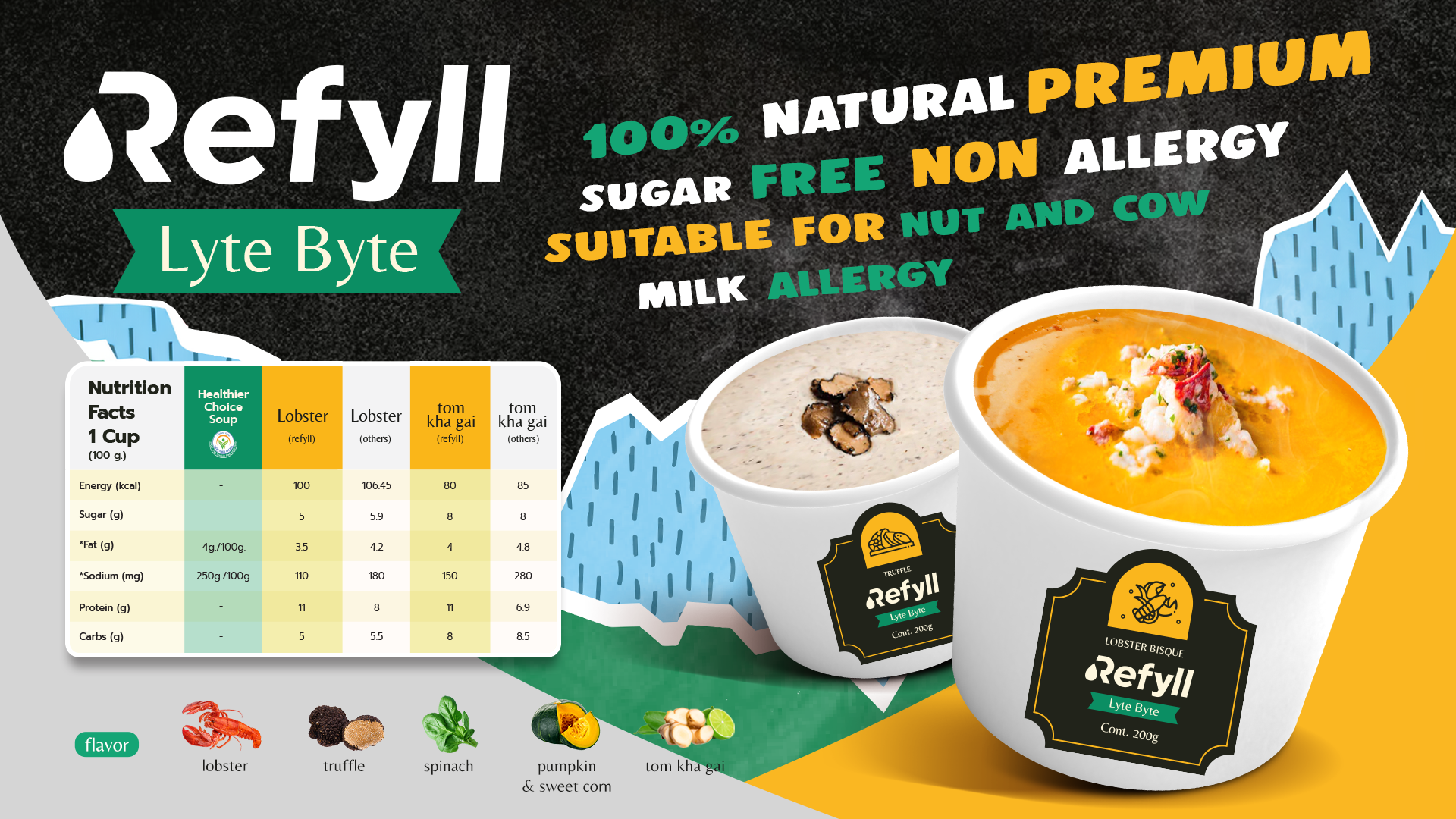 นอกจากนี้ นายภูภัคกุนยังได้พัฒนาผลิตภัณฑ์เพื่อสุขภาพ Refyll LyteByte ที่ออกแบบมาเพื่อผู้ที่แพ้นมวัวและถั่ว ปราศจากน้ำตาล และโซเดียมต่ำ สามารถบริโภคได้ในหลากหลายรูปแบบ เช่น ซุปเยลลี่และซอสดิป อีกทั้งยังมีโปรตีนจากอกไก่และวิตามินต่าง ๆ เพื่อเสริมประโยชน์ทางสุขภาพ นอกจากนี้ Refyll ยังขยายช่องทางการจัดจำหน่ายทั้งทางออนไลน์และการเข้าร่วมงานนิทรรศการเพื่อสร้างสรรค์ชุมชนที่มีสุขภาพดี