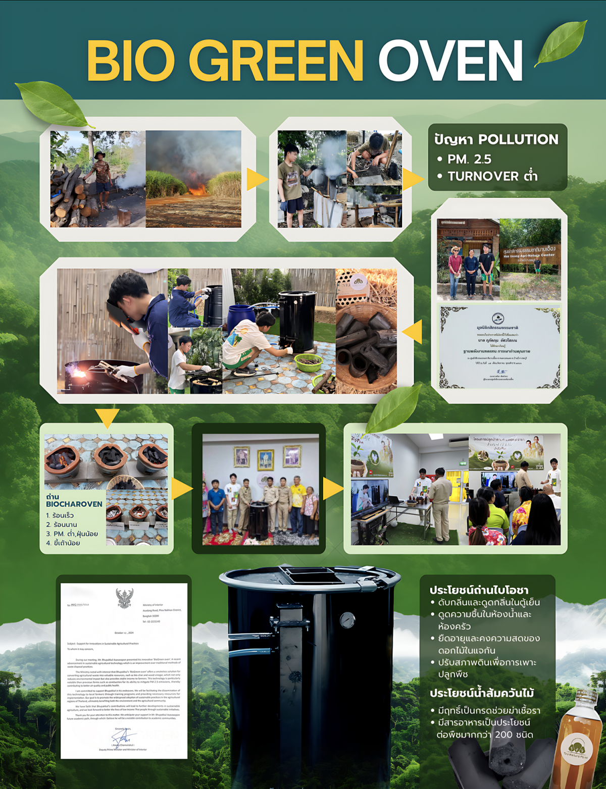นายภูภัคกุน อัศวโสภณ ผู้ก่อตั้งแบรนด์ Refyll ซึ่งมีผลิตภัณฑ์ในกลุ่ม เช่น Refyll LyteByte และ Refyll Grape Juice, Mineral Water, Organic Mulberry Tea with Roasted Jasmine Rice ได้แบ่งรายได้จากการขายมาทำกิจกรรมเพื่อชุมชน ผ่านโครงการ Bio Green Project ที่ได้ศึกษาวิธีการเกษตรกับมูลนิธิกสิกรรมธรรมชาติ จึงได้พัฒนานวัตกรรมเครื่องเผาถ่านเพื่อเพิ่มประสิทธิภาพการผลิตและลดมลพิษ PM2.5 โครงการนี้ยังมุ่งเน้นการเพิ่มรายได้ให้กับเกษตรกรด้วยการผลิต “Bio Char” (ถ่านไร้ควัน) น้ำส้มควันไม้ และยังได้ต่อยอดการทำ Bio Solar Oven เพื่อลดเวลาอบแห้ง จนได้ผลิตภัณฑ์ชาออร์แกนิกผสมข้าวหอมมะลิคั่ว ในการต่อยอดสนับสนุนชุมชน นายภูภัคกุนได้มอบเครื่องอบ “Bio Green Oven” และให้การอบรมแก่ชุมชนเกษตรกรในอำเภอวังม่วง นอกจากนี้ผลงานของเขายังได้รับเกียรติบัตรชื่นชมจากท่านอนุทิน ชาญวีรกูล รองนายกรัฐมนตรี และรัฐมนตรีว่าการกระทรวงมหาดไทย อีกด้วย