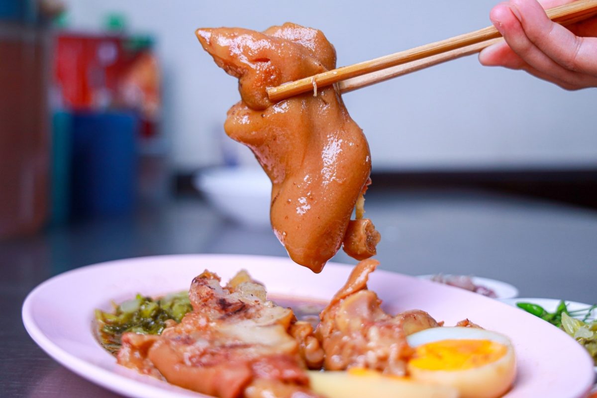 “ขาหมูไขมันต่ำ” เจ้าดัง “เล่อขาหมูทรงเครื่อง” ผ่านการ Slow Cook 12 ชั่วโมง ทั้งอบ ทั้งทอด ทั้งต้ม จนได้ออกมาเป็นขาหมูที่ไขมันหลุดออกจากชั้นหนังและเลาะออกได้อย่างง่ายดาย น้ำพะโล้มีกลิ่นหอมการทอดกรอบ เนื้อชั้นในนุ่มชุ่มฉ่ำ ส่วนเนื้อชั้นนอกก็ไม่แข็งกระด้างฝืดคอ เจ้าของเมนูเด็ดนี้คือ “เชฟเทียน เทียนชัย พีรพงศธร” อดีตทีมชาติไทยในการทำอาหาร และเป็นทายาทรุ่นที่ 3 จากร้านตำนาน 90 ปี ขาหมูโค้วจั้วฮวด ด้วยความรักในการทำอาหาร ประกอบกับจิตวิญญาณของความเป็นนายตัวเอง เชฟเทียนจึงจับนำเอาสูตรขาหมูของที่บ้านมาปรับใช้กับกรรมวิธียุคใหม่ นั่นคือการ Slow Cook เริ่มจากการนำขาหลังหมูไปทอดไฟเบาก่อนหนึ่งครั้ง จากนั้นจึงนำไปอบต่ออีก 1 ชั่วโมง แล้วถึงจะนำไปต้มในน้ำพะโล้โดยใช้ไฟประมาณ 80 องศา เป็นเวลา 12 ชั่วโมง ทำให้เนื้อสัตว์มีความนุ่มละเอียดไม่เสียรสชาติ แถมยังช่วยให้เครื่องพะโล้แทรกซึมเข้าไปได้ดีกว่าการต้มแบบปกติ