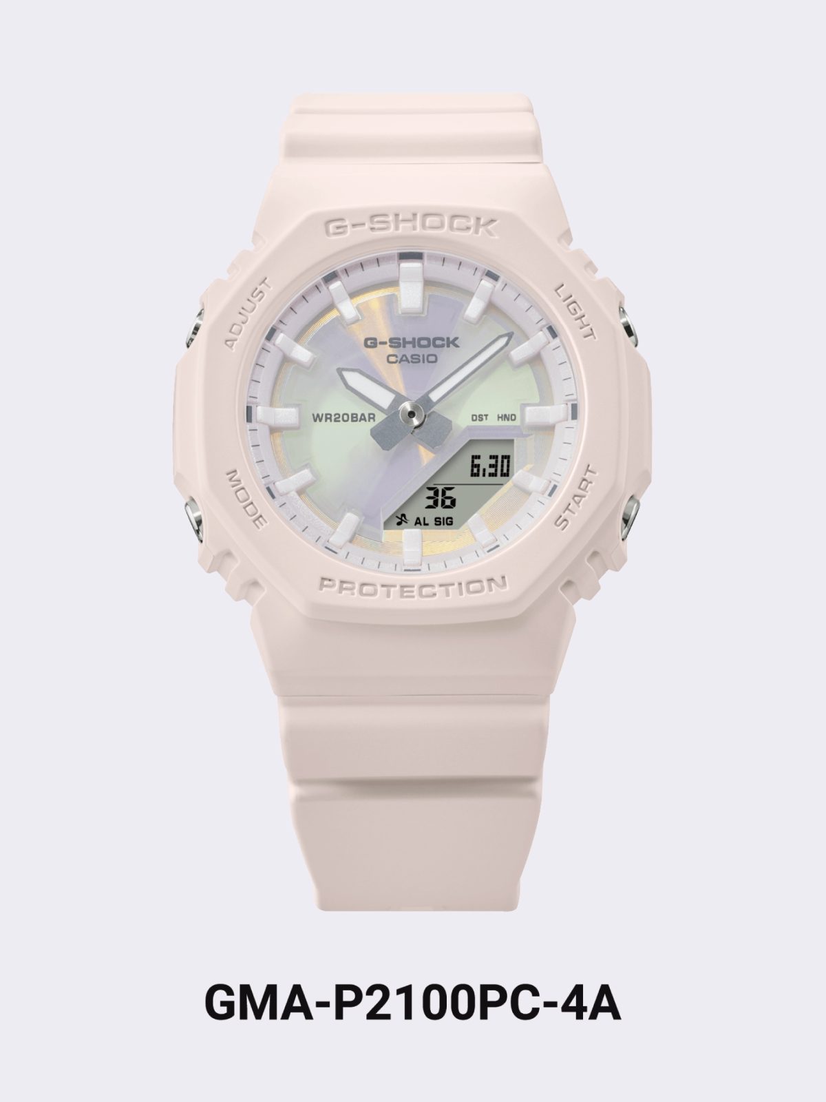 GMA-P2100STการเคลือบโพลาไรซ์สีมุกทำให้เกิดความสง่างามราวกับผ้าไหมนำความงามอันละเอียดอ่อนมาสู่นาฬิกาและมอบรูปลักษณ์ที่ดูซับซ้อน