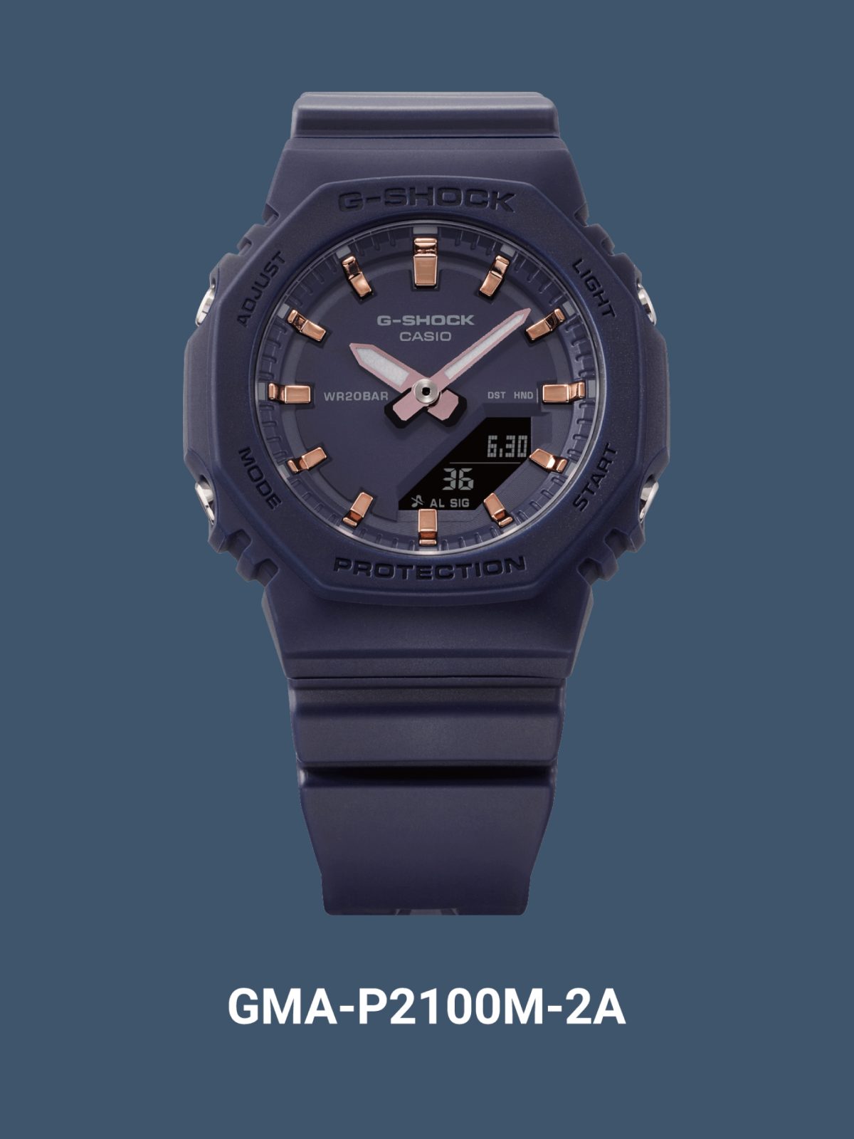 GMA-P2100M นาฬิการุ่นนี้ถูกสร้างขึ้นจากพื้นฐานของรุ่น GMA-S2100 กับดีไซน์ที่นำเสนอทางเลือกด้วยสีสันอันหลากหลาย ทั้งสีน้ำเงินเข้ม สีชมพู และสีขาว ซึ่งเข้ากันได้ดีกับทุกรูปแบบการแต่งตัว ทั้งยังเสริมด้วยสีทองพิงค์โกลด์เพื่อเพิ่มความงามหรู