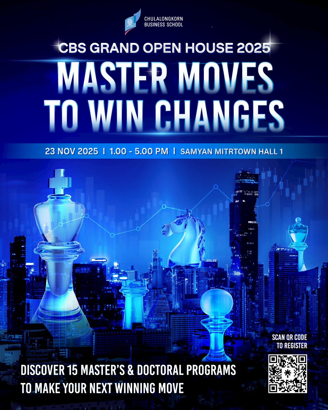 คณะพาณิชยศาสตร์และการบัญชี จุฬาลงกรณ์มหาวิทยาลัย (Chulalongkorn Business School: CBS) เชิญชวนผู้สนใจ เข้าร่วมงาน “CBS Grand Open House 2025” งานเปิดบ้านแห่งปีที่มุ่ง “สร้างผู้นำที่เรียนรู้ได้จริง และพร้อมลุยในโลกการทำงานยุคใหม่” จัดขึ้นในวันอาทิตย์ ที่ 23 พฤศจิกายน 2568 ณ สามย่านมิตรทาวน์ ฮอลล์ 1