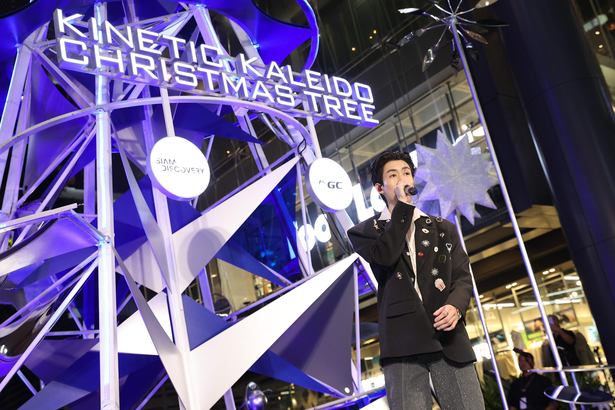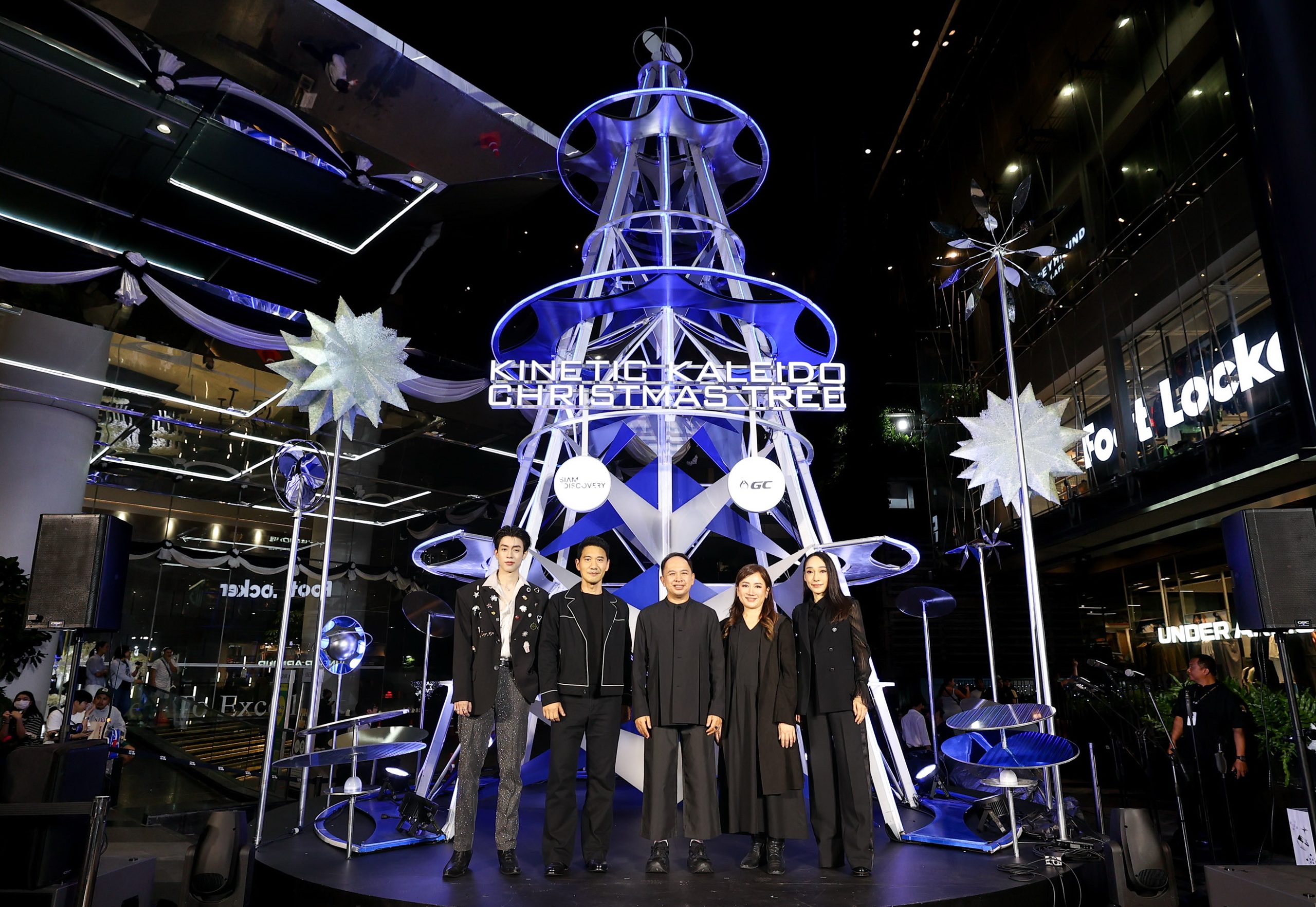 ต้นคริสต์มาสอัพไซเคิล “Kinetic Kaleido Christmas Tree” ดีไซน์ในคอนเซ็ปท์ The Cosmic Origami of Light โอริกามิแสงแห่งจักรวาลที่ถ่ายทอดความงดงามของศิลปะและเทคโนโลยีเข้าด้วยกัน ที่รังสรรค์ขึ้นจากโมดูลรูปทรงโอริกามิซ้อนต่อกันอย่างประณีต โครงสร้างสีเงินเมทัลลิก ส่องประกายด้วยเส้นแสง LED ไล่เฉดนีออนแบบกราเดียนต์ เผยลวดลายเรขาคณิตคล้ายภาพคาไลโดสโคปที่เคลื่อนไหวตามแรงลมอย่างมีชีวิต ก่อให้เกิดการเคลื่อนไหวที่สวยงามในทุกมุมมอง ผู้ชมสามารถเดินชมรอบต้นคริสต์มาสได้แบบ 360 องศา เพื่อสัมผัสประสบการณ์แห่งแสง สี และการเคลื่อนไหวอันดื่มด่ำราวกับหลุดเข้าไปในอวกาศของแสงแห่งศิลปะ