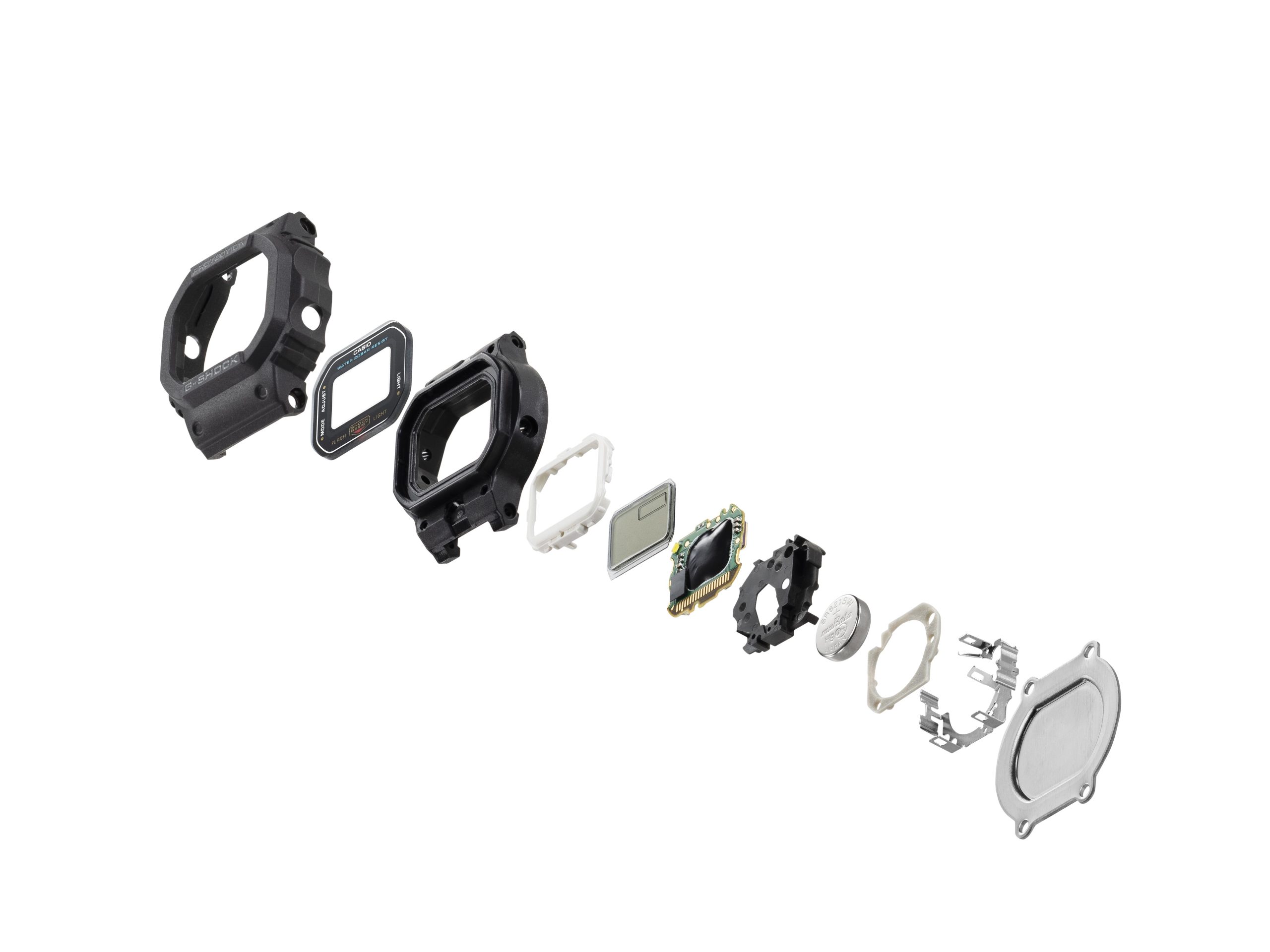 โมดูลนาฬิกาถูกย่อขนาดลงประมาณ 10 เท่า ด้วยเทคโนโลยีการติดตั้งความหนาแน่นสูง (high-density mounting) และแบตเตอรี่ขนาดจิ๋วพร้อมด้วยโครงสร้างเฉพาะตัวของ G-SHOCK เช่น ตัวเรือนที่ผลิตจากเรซินเสริมใยแก้วเพื่อเพิ่มความแข็งแรงขอบยูรีเทนที่ครอบคลุมตัวเรือนทั้งหมด การซีลแน่นหนาทั่วทั้งตัวเรือนช่วยป้องกันแรงกระแทกและน้ำแม้จะมีขนาดเล็กเท่าห่วงนิ้ว แต่นาฬิการุ่นนี้ยังคง ความแกร่งระดับ G-SHOCK อย่างเต็มรูปแบบทั้ง กันกระแทก และ กันน้ำได้ลึกถึง 200 เมตรฝาหลังแบบขันเกลียวยังช่วยให้สามารถ เปลี่ยนแบตเตอรี่ได้ เช่นเดียวกับนาฬิกาทั่วไป