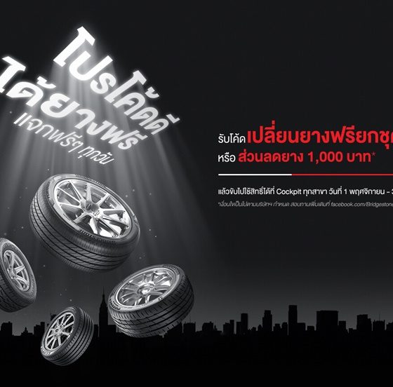 บริดจสโตน และค็อกพิท จัดโปรโมชั่นพิเศษส่งท้ายปี ในแคมเปญ “โปรโค้ดดี ได้ยางฟรี” รับฟรียางบริดจสโตน 4 เส้น หรือส่วนลด 1,000 บาท ทุกวัน!