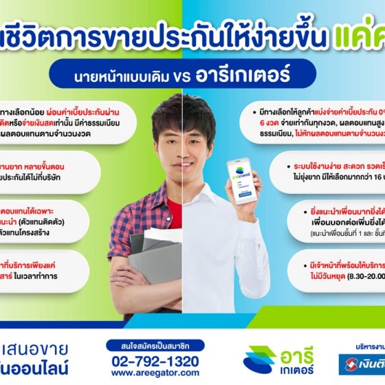 “เงินติดล้อ” เปิดตัว “อารีเกเตอร์” ชูนวัตกรรม InsureTech ช่วยสร้างรายได้ให้นายหน้าประกันภัยรายย่อย และส่งเสริมการเข้าถึงความคุ้มครองด้านประกันภัย