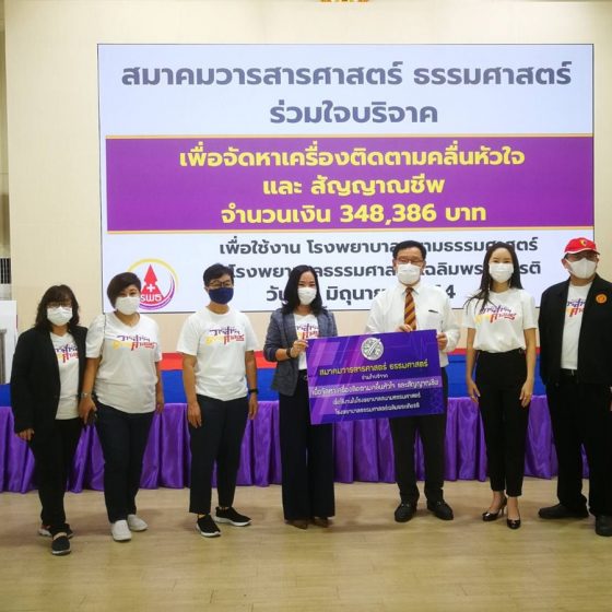 นายกสมาคมวารสารฯ ธรรมศาสตร์ มอบเงินบริจาคจากบรรดาศิษย์เก่า เพื่อจัดซื้อเครื่องติดตามสัญญานชีพสำหรับช่วยผู้ป่วยติดเชื้อโควิด-19 แก่โรงพยาบาลธรรมศาสตร์ฯ