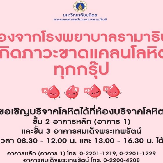 รพ.รามาธิบดีขาดแคลนโลหิต เชิญชวนร่วมบริจาค