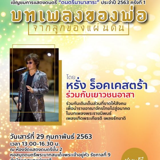กรมศิลปากรขอเชิญชมการแสดงดนตรี “บทเพลงของพ่อจากลูกของแผ่นดิน”