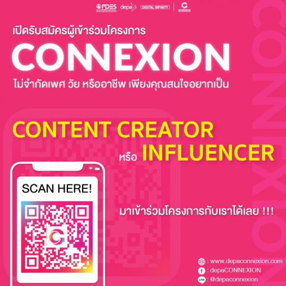 โอกาสมาแล้ว!! “ดีป้า” เปิดโครงการ CONNEXION รับสมัครอินฟลูฯมือใหม่ผลิตคอนเท้นต์ฮิตป้อนตลาด