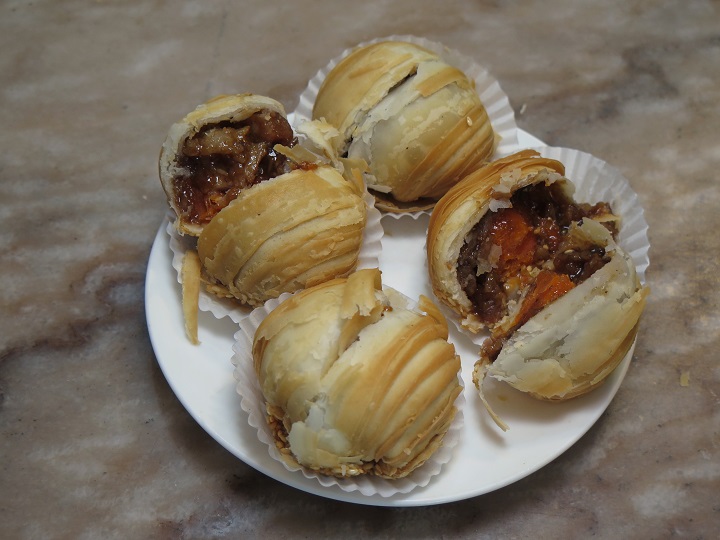 ส่วนไส้อื่นๆ มีไส้ถั่วแดงไข่เค็ม ไส้ชาเขียวไข่เค็ม ไส้ลูกบัวไข่เค็ม ไส้พุทราจีนไข่เค็ม อีกทั้ง “ไส้มันม่วงไข่เค็ม” ก็เป็นไส้ที่กำลังฮิต สนนราคา 1 กล่องมี 10 ชิ้น 120 บาท และก็มี ไส้งาดำไข่เค็ม (กล่องละ 170 บาท) และมี “ไส้ตามฤดูกาล” คือไส้ฟักทองไข่เค็ม (120 บาท) กับไส้ทุเรียนไข่เค็ม (กล่องละ 250 บาท) อีกอย่างที่ผมชิมแล้วถูกใจคือ “กะหรี่ปั๊บไส้ไก่” กินคู่กับอาจาดเข้ากันดี