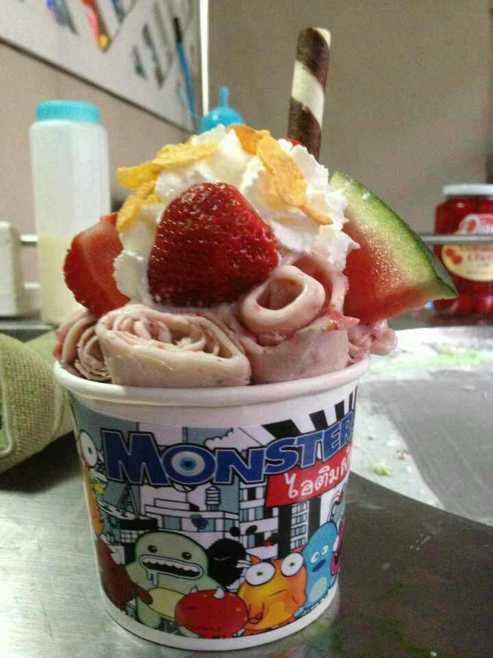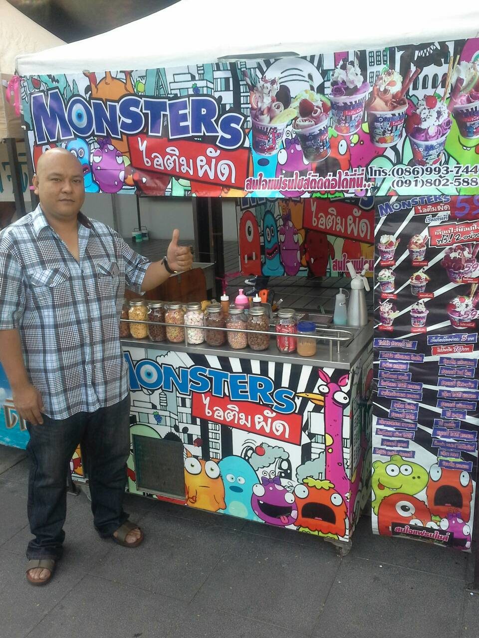 “มอนสเตอร์ ไอติมผัด” เจ้าของสโลแกน “ถ้าคุณชอบ…มันก็ใช่” เป็นไอศกรีมสด ที่นำไปผัดบนกระทะที่มีความเย็นกว่าช่องฟรีซในตู้เย็นถึง 4 เท่า ลูกค้าสามารถเลือกมิกซ์รสชาติได้ตามชอบใจ มี โอ๊ต –คงกะพัน ดีวงษ์ เป็นเจ้าของกิจการ