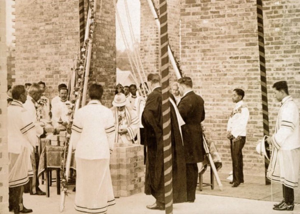 พระบาทสมเด็จพระมงกุฎเกล้าเจ้าอยู่หัว ทรงวางศิลาพระฤกษ์ ตึกบัญชาการโรงเรียนข้าราชการพลเรือนฯ เมื่อวันที่ 3 มกราคม 2458