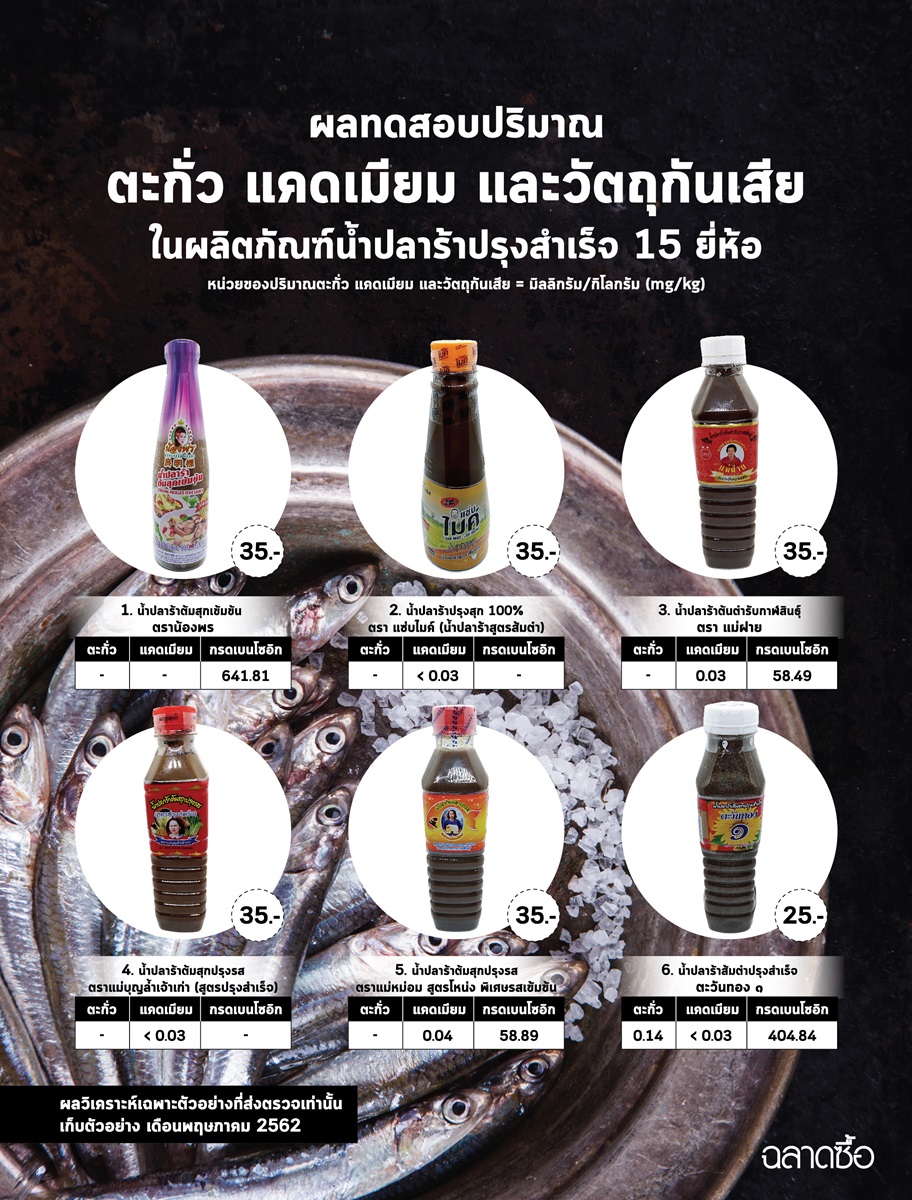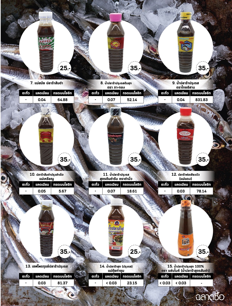ศูนย์ทดสอบฉลาดซื้อเผยปริมาณแคดเมียม, ตะกั่วและสารกันบูดในผลิตภัณฑ์น้ำปลาร้าปรุงสำเร็จปลอดภัย สารกันบูดไม่เกินเกณฑ์ที่กำหนด แนะให้ผู้บริโภคอ่านฉลากให้รอบคอบและเลือกรับผลิตภัณฑ์ที่มี อย.