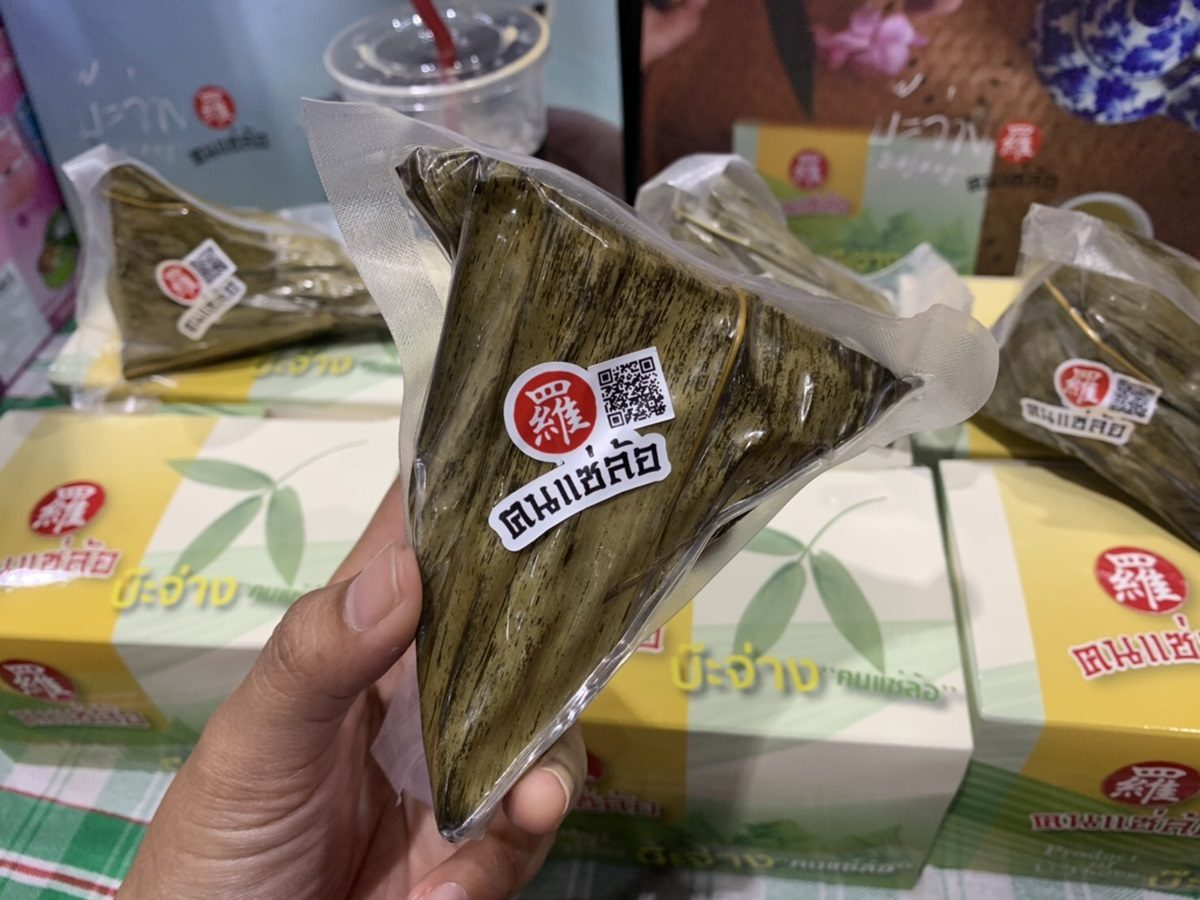 “…บะจ่างของเรายังซีลสุญญากาศเพื่อให้เก็บได้นานขึ้น อยู่ได้ถึงสองสัปดาห์โดยไม่ต้องเข้าตู้เย็น ส่วนข้าวที่ใช้ในการทำเป็นข้าวเหนียว ห่อด้วยใบไผ่ตงเพราะใบใหญ่ดี ที่เยาวราชมีใบไผ่ขายอยู่แล้ว หาไม่ยาก ปกติแล้ววันหนึ่งทำอยู่ประมาณ 1,000 ลูก ราคาขาย 3 ลูก 150 บาท ช่วงเทศกาลนี่เสิร์ฟไม่ทันเลย บะจ่างไม่ใช่ขนมหรืออาหารกินเล่น คนรุ่นใหม่ไม่ค่อยรู้จักกันและกินไม่ค่อยเป็น ทั้งที่เป็นของมีประโยชน์ วิธีการกินไม่ยุ่งยากอะไร อย่างของผมแค่เปิดส่วนที่เป็นซีลสุญญากาศออกนิดหนึ่ง นำเข้าไมโครเวฟอุ่นให้ร้อนพอดีๆ ก็กินได้แล้ว อร่อยและได้คุณประโยชน์ สนใจสั่งซื้อทางออนไลน์ได้ หรือโทร 063-209 3201…อยากให้ลองกินดู”