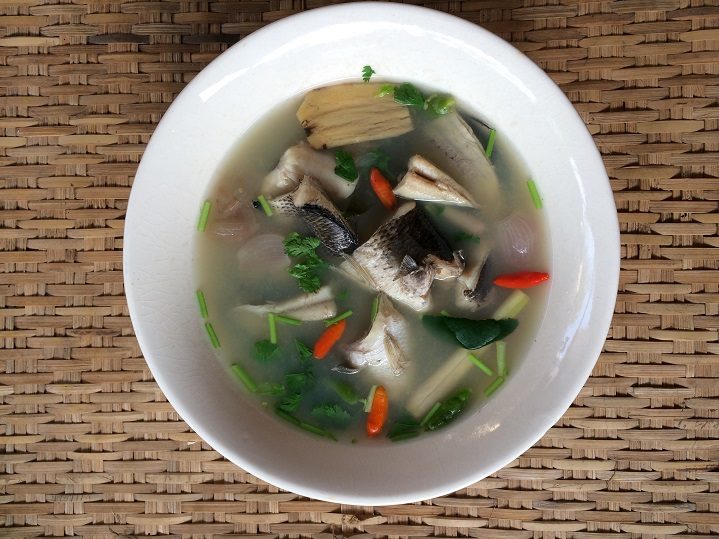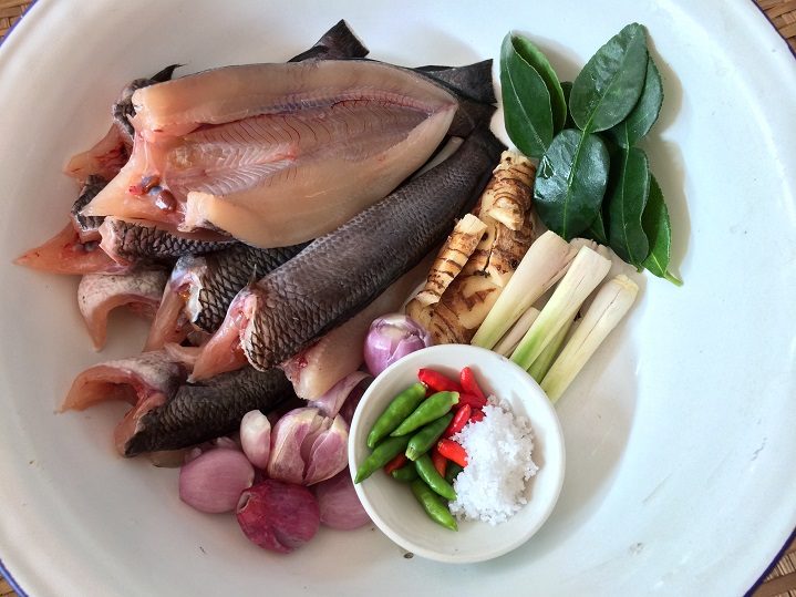 เพื่อจะได้โฮก-อือ (หรือโฮก-ไร ก็ได้) ในยามเช้าอันหนาวเหน็บ เราก็ตั้งหม้อน้ำบนเตาไฟให้เดือด ใส่เกลือ ข่าแก่ หอมแดงทุบ พอเดือดสักครู่ ใส่ตะไคร้ทุบพอแตก ตามด้วยปลาช่อนนาหั่นชิ้นใหญ่