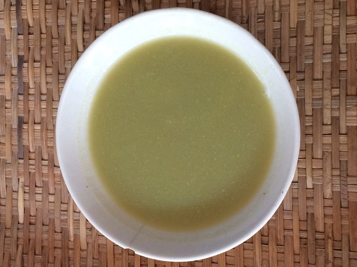 กรองด้วยกระชอน เราจะได้น้ำมะขามสดต้ม สีเขียวอ่อนสวย รสเปรี้ยวชื่นใจมากๆ เลยครับ
