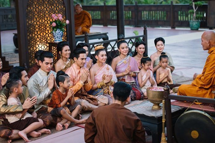 สำหรับ ‘พิธีซัดน้ำ’ ถือเป็นประเพณีแต่งงานในสมัยโบราณ เป็นต้นแบบของพิธีรดน้ำสังข์ และอวยพรให้บ่าวสาวครองชีวิตถือไม้เท้ายอดทองกระบองยอดเพชร โดยพิธีนี้มีพระสงฆ์เป็นผู้ทำพิธี จะเริ่มช่วงบ่ายของวันก่อนแต่งงาน ซึ่งเจ้าบ่าวเจ้าสาวจะนั่งเว้นระยะห่างกัน โดยมีพระให้ศีลและสวดมนต์ จากนั้นพระเถระผู้เป็นประธานก็สาดน้ำมนต์รดบ่าวสาว รวมถึงกลุ่มญาติและเพื่อนที่นั่งล้อมอยู่ ก่อนให้ผู้ใหญ่ที่เคารพนับถือรถน้ำเป็นคนสุดท้ายแล้วนำบาตรครอบศีรษะเจ้า บ่าวเจ้าสาว ก็เป็นอันเสร็จพิธี