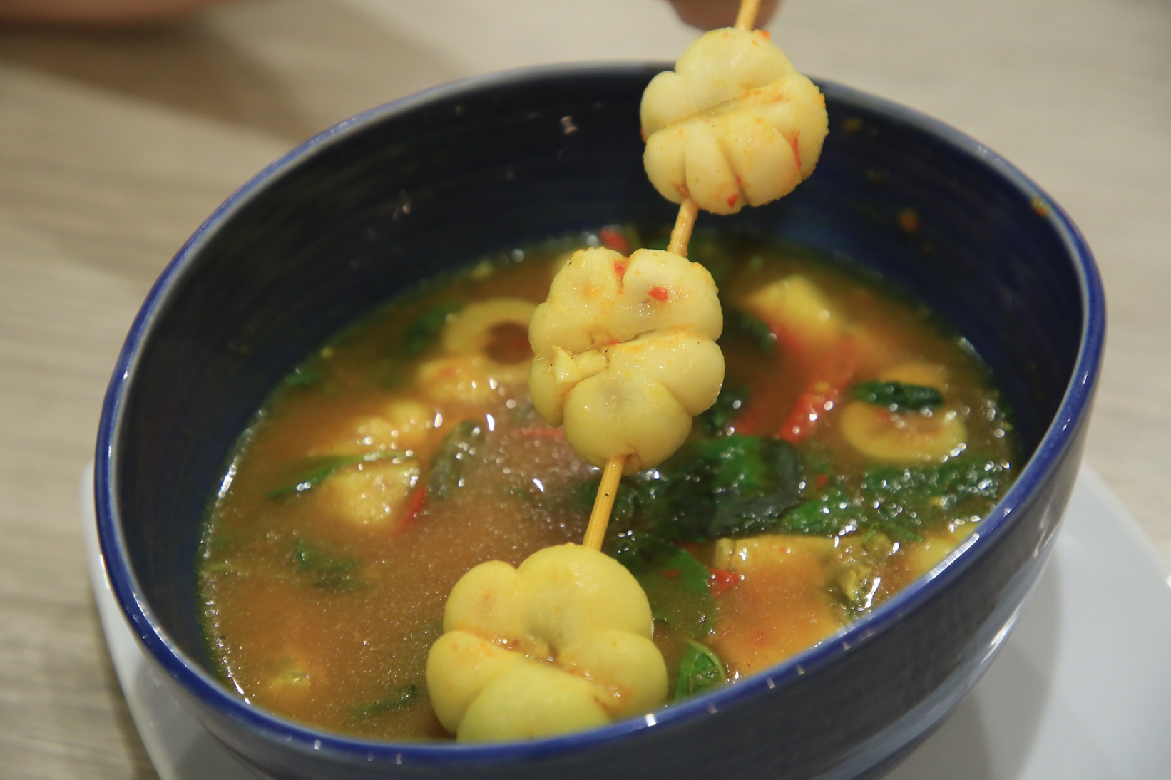 ปิดท้ายกันที่เมนู “แกงส้มพริกสดปลากะพงมังคุดคัดเมืองคอน” เป็นอีกเมนูที่ต้องขอข้าวร้อนๆ ด่วนๆ กลิ่นหอมของเครื่องแกงและมังคุดคัดที่ลอยละล่องอยู่ในน้ำแกง แถมเสียบไม้มายั่วอีกต่างหาก ต้องบอกว่าใครที่ชอบอาหารใต้ต้องชิมจานนี้เด็ดจริงๆ เนื้อปลาที่หวานนุ่มกินกับมังคุด ผสานกับน้ำแกงและสมุนไพรในชาม เพิ่มรสชาติความอร่อยหอมละมุน เคี้ยวหมุบหมับฟินปิดท้าย ความอร่อย หวาน กรอบ ของมังคุดคัดได้เป็นอย่างดี