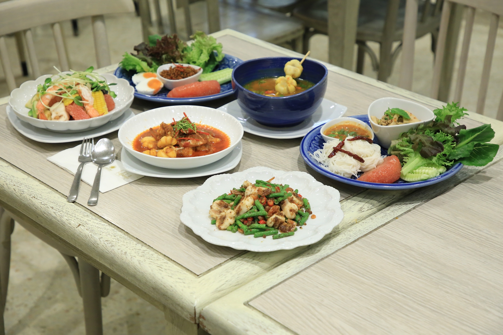 ช่วงนี้ “ชิงช้าชาลี” ยังมีผลไม้เมืองไทยอย่างส้มโอทับทิมสยาม ที่สีสันสวยงามและรสชาติเปรี้ยวหวาน นำมาเป็นเครื่องเคียงในอาหาร ยกตัวอย่าง เมนูขนมจีน ลาบขนมจีนส้มโอทับทิม ที่ลงตัว เพิ่มความอร่อยคุ้มค่าและสุขภาพดีให้เลือกรับประทานได้อีกด้วย