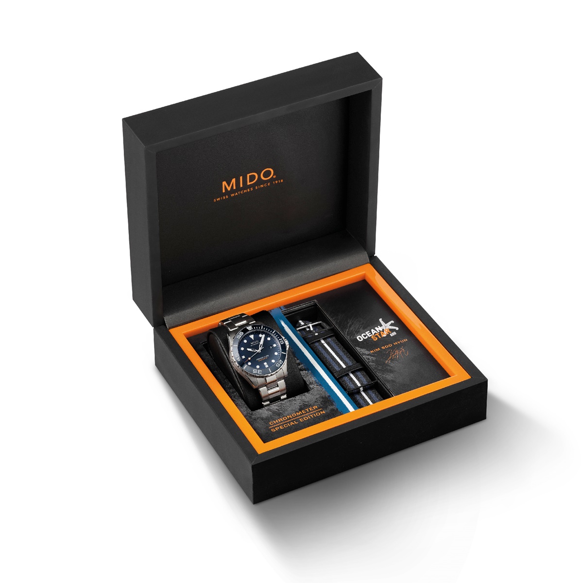 เป็นที่จับตามองสำหรับเหล่าคนรักนาฬิกาอีกครั้ง เมื่อ “มิโด” (MIDO) แบรนด์นาฬิกาชั้นนำจากสวิตเซอร์แลนด์ ในเครือเดอะ สวอท์ช กรุ๊ป เทรดดิ้ง (ประเทศไทย) จัดงานเปิดตัวเรือนเวลาดำน้ำรุ่นพิเศษ “โอเชี่ยน สตาร์ 600 โครโนมิเตอร์ คิม ซู ฮยอน สเปเชียล อิดิชั่น” (Ocean Star 600 Chronometer Kim Soo Hyun Special Edition) โดยในครั้งนี้มิโดได้ร่วมมือกันกับแบรนด์แอมบาสเดอร์หนุ่มชื่อดัง “คิม ซู ฮยอน” (Kim Soo-Hyun) ซูเปอร์สตาร์ระดับแถวหน้าของเกาหลี เปิดตัวโมเดลใหม่ที่มาพร้อมสายนาฬิกาพิเศษซึ่งผสมผสานเฉดสีฟ้าขาว และดำเข้าด้วยกันได้อย่างโดดเด่นลงตัวสำหรับรุ่น “โอเชี่ยน สตาร์ 600 โครโนมิเตอร์ คิม ซู ฮยอน สเปเชียล อิดิชั่น” อีกทั้งเรือนเวลารุ่นพิเศษนี้ยังมาพร้อมกับกล่องเฉพาะรุ่นที่ประทับลายเซ็นของ “คิม ซู ฮยอน” (Kim Soo-Hyun) เอาไว้อีกด้วย โดยงานครั้งนี้ได้จัดขึ้นที่ห้างสรรพสินค้าล็อตเต้ (Lotte Department Store) ใจกลางกรุงโซล โดยมี “คิม ซู ฮยอน” (Kim Soo-Hyun) มาร่วมเป็นส่วนสำคัญของงานพร้อมประทับลายเซ็นลงบนผนังแฟล็กชิพสโตร์ของ “มิโด” (MIDO)