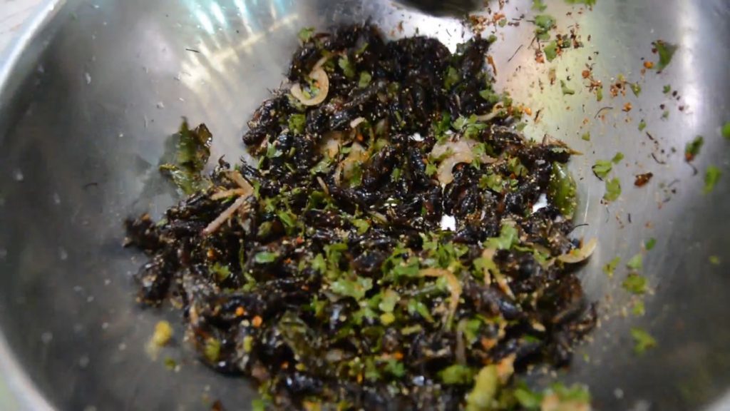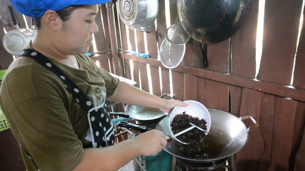 จุดเด่นแบบถือว่าเป็นไฮไลต์เลย ต้องแห้งไม่ให้มีน้ำมาก แค่พอขลุกขลิก ซึ่งตั้งทิ้ง นั่งนานๆ เมนูนี้ก็ยังรักษาความกรุบกรอบอยู่ และยังเพิ่มเติมกับเมนู “ลาบจิ้งหรีดทอด ส้มตำไทยโรยด้วยจิ้งหรีดทอด และอีกเมนู ที่นำเสนอ ก็คือ “ไข่เจียวจิ้งหรีดทอด” ที่หน้าตาคล้ายๆ กับ ไข่เจียวหมูสับ ซึ่งเป็นเมนูอาหารสุดโปรดของหลายๆคน