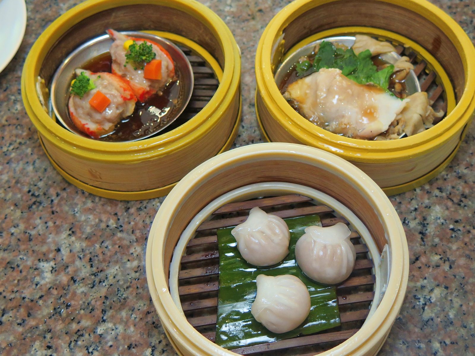 เราสั่งติ่มซำอย่างอื่นมาอีกเพียบทั้ง “ก้ามปูแต้มหน้าหมู” (หมายถึงวางอยู่บนหมูสับ) “ไข่นกกระทาแต้มหน้าหมู เห็ดเข็มทองแต้มหน้าหมู ก๋วยเตี๋ยวหลอดกุ้ง ก๋วยเตี๋ยวหลอดหมู ตีนเป็ดจักรพรรดิ” ส่วนซาลาเปาต้องชิม “ซาลาเปาไส้หมูดั้งเดิม” ของเมืองตรังคือไส้หมูจะ “คล้ายหมูพะโล้” และก็มีไส้สังขยา ไส้ถั่วดำ ไส้ครีม ไส้หมูแดง อีกทั้ง “มินิซาลาเปา” ลูกจิ๋วๆ น่าเอ็นดู ทั้งไส้ครีม ไส้หมูแดงเสิร์ฟมาในเข่ง