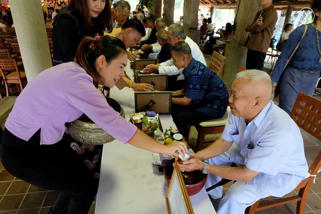 บริเวณหอคำในไร่แม่ฟ้าหลวงมีการประดับตกแต่งด้วยตุงและดอกไม้ส่งกลิ่นหอมตลบอบอวล ผู้เข้าร่วมพิธีนอกจากแขกผู้มีเกียรติแล้ว ที่สำคัญคือคณะสงฆ์ และผู้อาวุโสจาก 18 อำเภอของ จ.เชียงราย อำเภอละ 2 คน นอกจากนี้ยังมีลูกหลาน และเยาวชนคนรุ่นใหม่เข้าร่วมกันอย่างคึกคัก