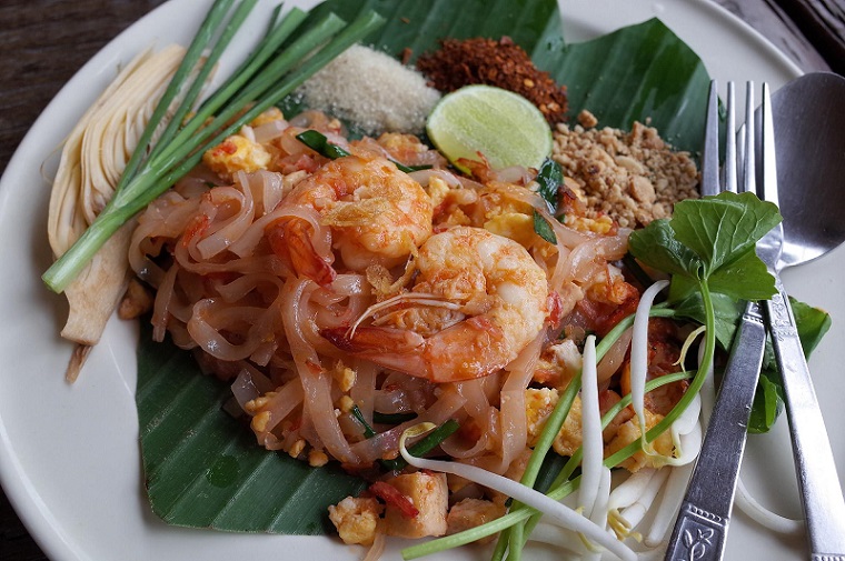 สำหรับยำส้มโอโพเมโล่ คือ ยำส้มโอน้ำพริกเผา น้ำยำเป็นสูตรโบราณ ทำจากน้ำพริกเผา มะขามเปียก น้ำตาลปึก มะพร้าวเผาขูด กะทิ คลุกกับส้มโอรสจัดจ้านผลผลิตสดๆ จากสวน เสิร์ฟจัดจานสวยงาม กลิ่นหอมยั่วน้ำลาย ส่วนผัดไทยกุ้งสด ใช้เส้นจันท์ธรรมดา แต่ด้วยเทคนิคการผัด ทำให้ผัดไทยพิเศษขึ้นด้วยสัมผัสเส้นที่นุ่ม หนึบ