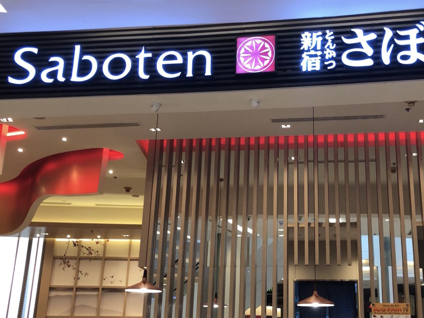 ร้านซาโบเตนที่ไปชิมในครั้งนี้คือสาขาสยามพารากอน ชั้น 4 ที่จริงหลายคนอาจรู้จักหรือเคยได้ยินร้านนี้มาบ้างแล้ว ด้วยเป็นร้านทงคัตสึที่เปิดในญี่ปุ่นมากว่า 50 ปี มีสาขามากกว่า 500 สาขา เป็นสาขาในญี่ปุ่นกว่า 400 สาขา และยังกระจายตัวอยู่ในประเทศอื่นๆ อีก เช่น เกาหลี จีน สิงคโปร์ ฟิลิปปินส์ แคนาดา รวมถึงไทย ซึ่งที่ไทยนั้นเปิดมาประมาณ 10 ปี ปัจจุบันมีอยู่ 6 สาขาด้วยกัน