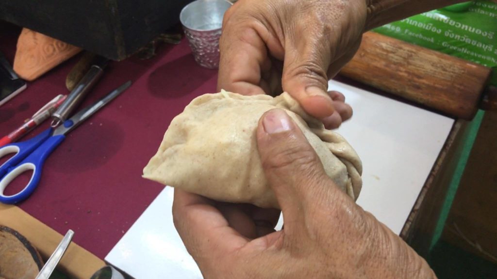 สำหรับขั้นตอนการทำไม่ยุ่งยาก เริ่มแรกนำแป้งมารีดให้บาง จากนั้นใส่ไส้ลงไป นำแป้งมาประกบปิดให้มิดจับจีบแบบเดียวกับกะหรี่ปั๊บ แล้วนำไปย่างบนเตาให้เหลืองน่าทานจนกลิ่นหอมโชย
