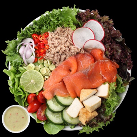 เมนูสลัดยำแซลมอนซาชิมิกับมะม่วงและอะโวคาโด้ น้ำยำรสเข้มข้น  อิ่มสบายท้องด้วยไขมันดีจากอะโวคาโด โปรตีนจากแซลมอน เส้นใยอาหารและสารต้านอนุมูลอิสระจากมะม่วง เต็มเปี่ยมไปด้วยคุณค่าทางโภชนาการ เหมาะสำหรับสาวๆที่ไม่อยากอ้วนและรักสุขภาพ