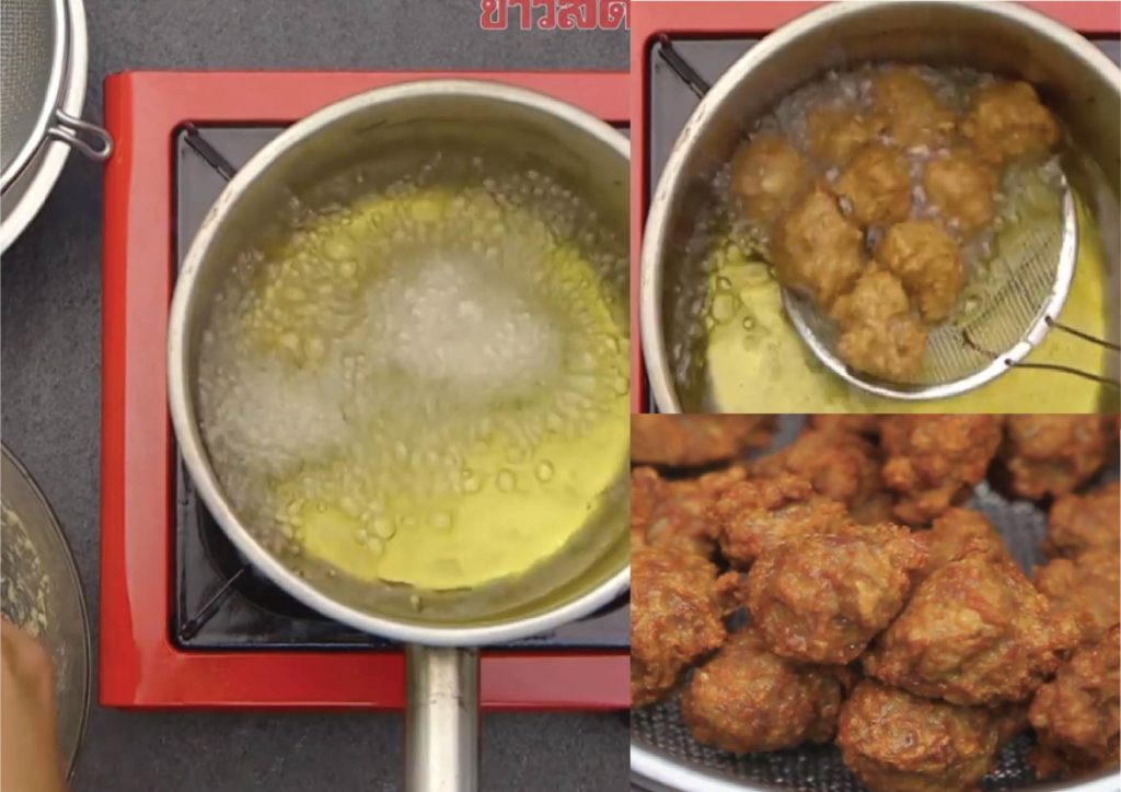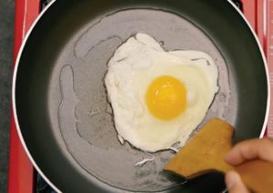 – นำกระทะตั้งไฟทอดไข่ดาวเตรียมไว้