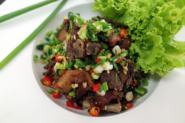 ยังว้าวกันต่อเนื่องกับอีก 2 เมนู คือ “เป็ดพะโล้คั่วเกลือ” จานนี้นักดื่มปลื้มแน่นอน ด้วยการนำเป็ดพะโล้มาทอดในน้ำมันที่เดือดพล่านจนได้กรอบนอกนุ่มใน แล้วนำมาผัดเกลือ พร้อมผักชีต้นหอม หยิบคนละหมุบละหมับแป๊บเดียวเกลี้ยงจาน