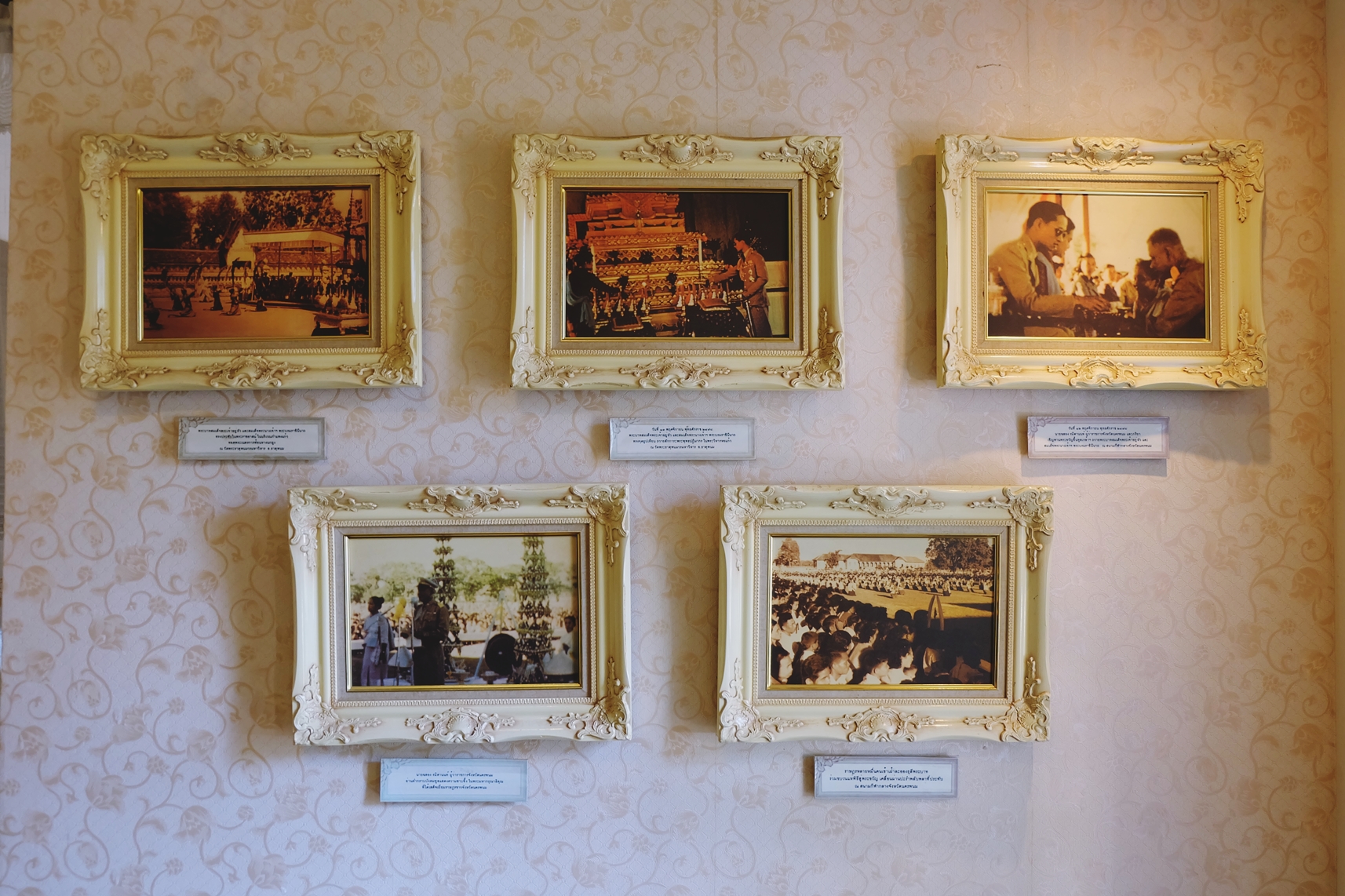 ส่วนชั้นบนจะพบโต๊ะหมู่บูชา และพระพุทธรูป ถัดมาจะพบกับห้องที่ พระบาทสมเด็จพระปรมินทรมหาภูมิพลอดุลยเดช บรมนาถบพิตร และสมเด็จพระบรมราชินีนาถ ได้เคยประทับแรมเมื่อครั้งทรงเสด็จฯ เยี่ยมราษฎรจังหวัดนครพนม ปัจจุบันห้องนี้เป็นพื้นที่ห้ามเข้า และทางพิพิธภัณฑ์ได้ย้ายเครื่องบรรทมออกไปแล้ว แต่ได้มีการนำเตียงและเครื่องเรือนเก่าที่เข้ากับอาคารมาตั้งไว้แทน ในส่วนของโถงชั้นบนยังมีการแสดงภาพประวัติศาสตร์ของเมืองนครพนมไว้อีกด้วย