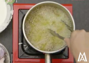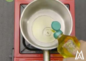 4. ตั้งกระทะเทน้ำมันตั้งไฟให้ร้อน