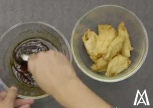 7. นำซอสสำเร็จมาคลุกกับไก่ทอดแค่พอเคลือบในอ่างผสม ใช้แปรงช่วยปัดซอสจนทั่วถึง พร้อมจัดใส่จานพร้อมเสิร์ฟ น่าทานสุดๆ