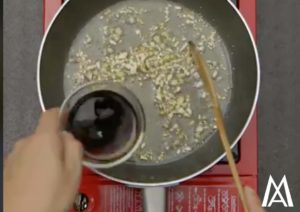 1. ก่อนอื่นเลยตั้งกระทะไฟอ่อนๆ พอกระทะร้อนใส่น้ำมันผัดกระเทียม ขิงสับ ผัดจนหอม