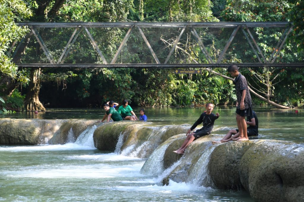 อิ่มหนำสำราญกันแล้ว ล้อหมุนต่อไปอีกนิด พาคณะเที่ยวชมน้ำตกเจ็ดสาวน้อย น้ำตกตามธรรมชาติ ที่มีชื่อมาจากหมู่บ้านที่ตั้งอยู่ทางทิศเหนือของน้ำตก ชื่อว่า “บ้านสาวน้อย” และน้ำตกมี7ชั้น จึงเป็นที่มาของน้ำตกเจ็ดสาวน้อย ที่นี่มีน้ำให้เล่นตลอดปี และเมื่อปีที่ผ่านมาได้ขึ้นเป็นอุทยานแห่งชาติแล้วด้วย