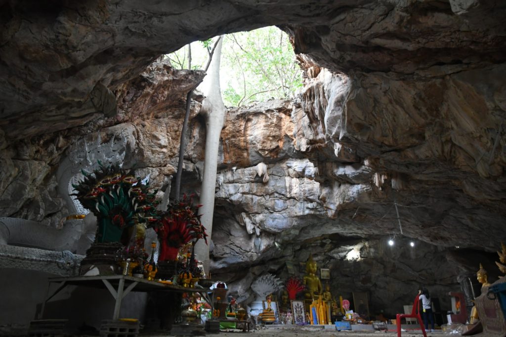 อิ่มท้องกันแล้ว มาไหว้พระและเดินย่อยอาหารที่วัดถ้ำดาวเขาแก้ว อยู่ถัดไปไม่ไกลนัก ที่นี่มีถ้ำขนาดใหญ่ ความลึกประมาณ 500 เมตร กว้าง 15 เมตร การเข้าชมต้องขึ้นบันไดจากเชิงเขาดาวเขาแก้วไปถึงปากถ้ำประมาณ 100 เมตร ภายในถ้ำมีหินงอกหินย้อยตามเพดาน และฝาผนัง บางจุดคล้ายรูปดาว และในช่วงเย็นจะได้พบกับฝูงค้างคาวนับพันตัวที่พากันบินออกหากิน