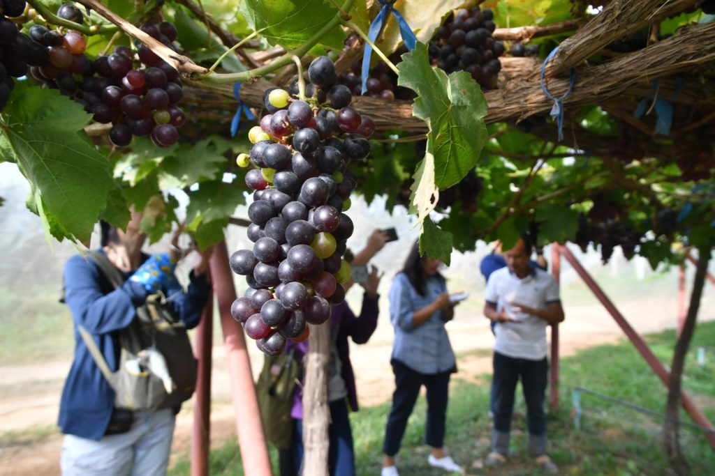 ล้อหมุนต่อไป ที่ไร่องุ่นไร้เมล็ดปลอดสารพิษ ภูนวพันธุ์ ของคุณสมชาย ผลเคน ทันทีที่มองเข้าไปในโรงเรือนต้องชมก่อนเลยว่า ผลองุ่นที่นี่ดกและงามมาก และพอได้ลิ้มรสความหวานก็ต้องกดไลค์รัวๆๆๆ และซื้อติดไม้ติดมือกลับไปเป็นของฝากด้วย