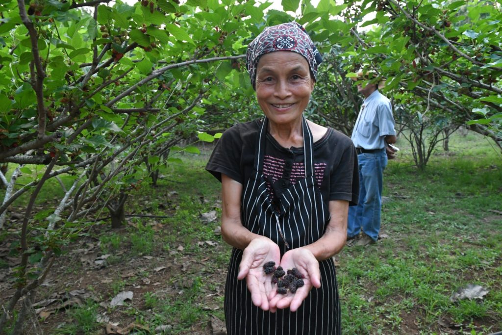 ป้าน้อย บอกว่า นอกจากขายผลมัลเบอรี่สดแล้ว ยังนำมัลเบอรี่มาแปรรูปเป็นน้ำพร้อมดื่ม แยม ซอสราดเค้ก รวมถึงชาใบหม่อน ทำแบบชาเขียวญี่ปุ่นเลย ภายใต้แบรนด์ Mombery ที่เราได้ลิขสิทธิแล้ว