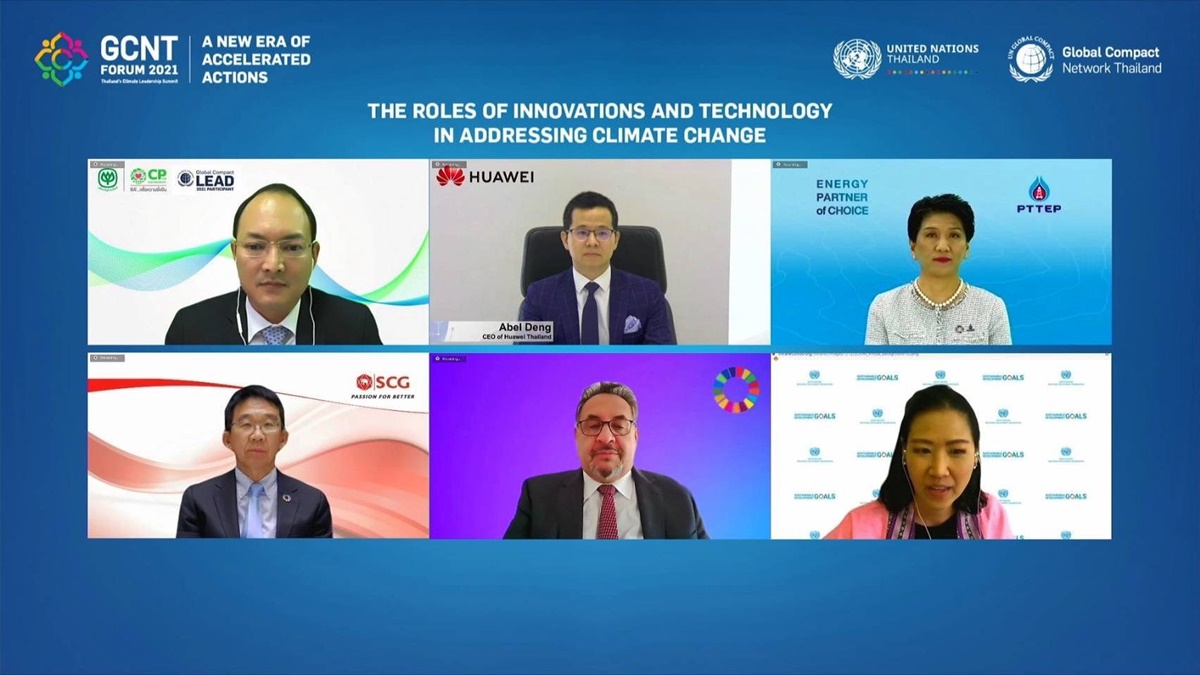 ทั้งนี้ ในงานเสวนาและประกาศเจตนารมณ์สู้วิกฤตโลกร้อน “GCNT Forum 2021: Thailand’s Climate Leadership Summit 2021” เครือซีพี โดยนายสมเจตนา ภาสกานนท์ ผู้อำนวยการด้านพัฒนาความยั่งยืน สำนักบริหารความยั่งยืน ธรรมาภิบาล และสื่อสารองค์กร ได้เป็นผู้แทนเครือฯ เข้าร่วมเสวนาหัวข้อ “บทบาทของนวัตกรรมและเทคโนโลยีในการแก้ปัญหาจากการเปลี่ยนแปลงสภาพภูมิอากาศ” ร่วมกับนายอาเบล เติ้ง (Abel Deng) ประธานกรรมการบริหาร บริษัท หัวเว่ย เทคโนโลยี (ประเทศไทย) จำกัด นางนาถฤดี โฆสิตาภัย. รองกรรมการผู้จัดการใหญ่ กลุ่มงานกลยุทธ์และพัฒนาธุรกิจ บริษัท ปตท.สํารวจและผลิตปิโตรเลียม จํากัด (มหาชน) นายยุทธนา เจียมตระการ ผู้ช่วยผู้จัดการใหญ่การบริหารกลาง เอสซีจี และนายเบอร์นาร์โด คาลซาดิยา – ซาร์เมียนโต้ (Bernardo Calzadilla- Sarmiento) ผู้อำนวยการฝ่ายการค้าการลงทุนและนวัตกรรม องค์การพัฒนาอุตสาหกรรมแห่งสหประชาชาติ (UNIDO)